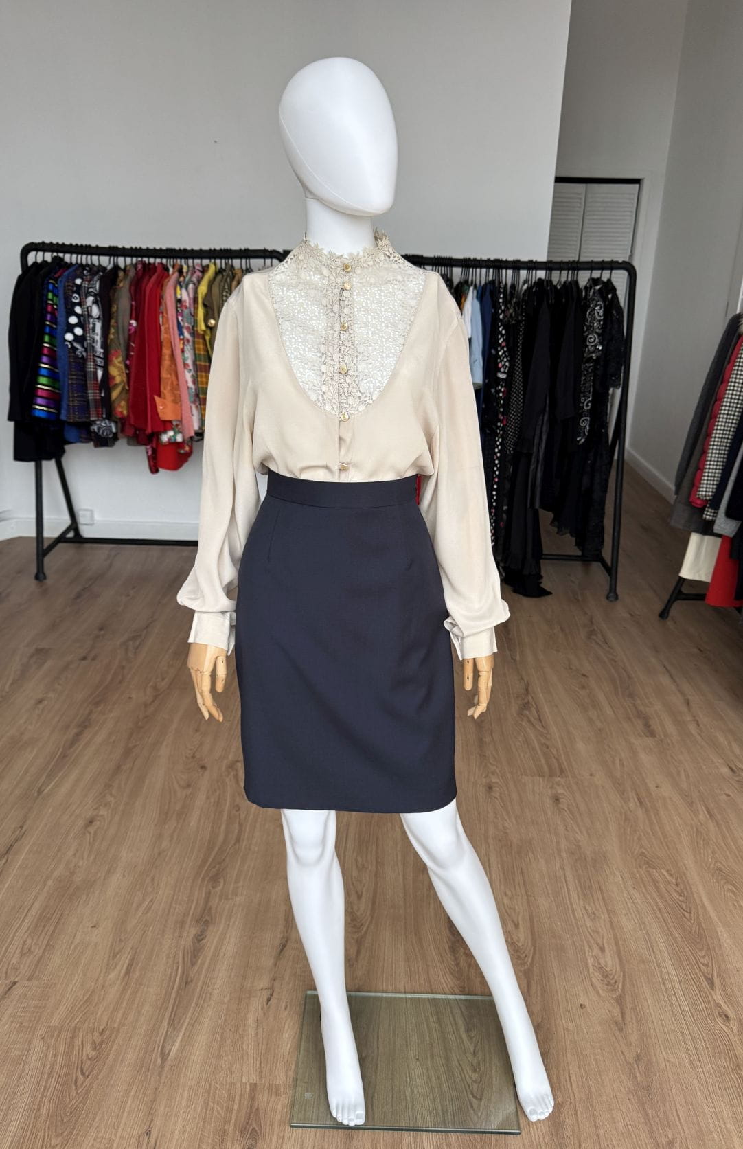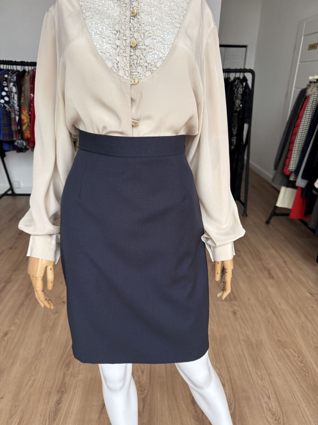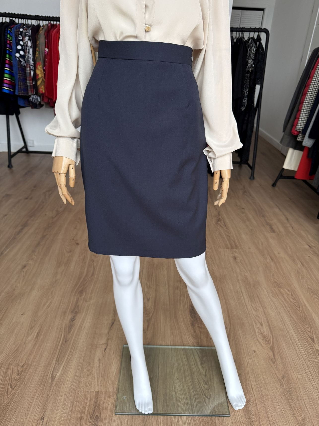 Ołówkowa spódnica od Alberty Feretti, Ferretti Jeans Philosophy. Wykonana z wełny dziewiczej w kolorze atramentowym. Od wewnątrz podszewka.