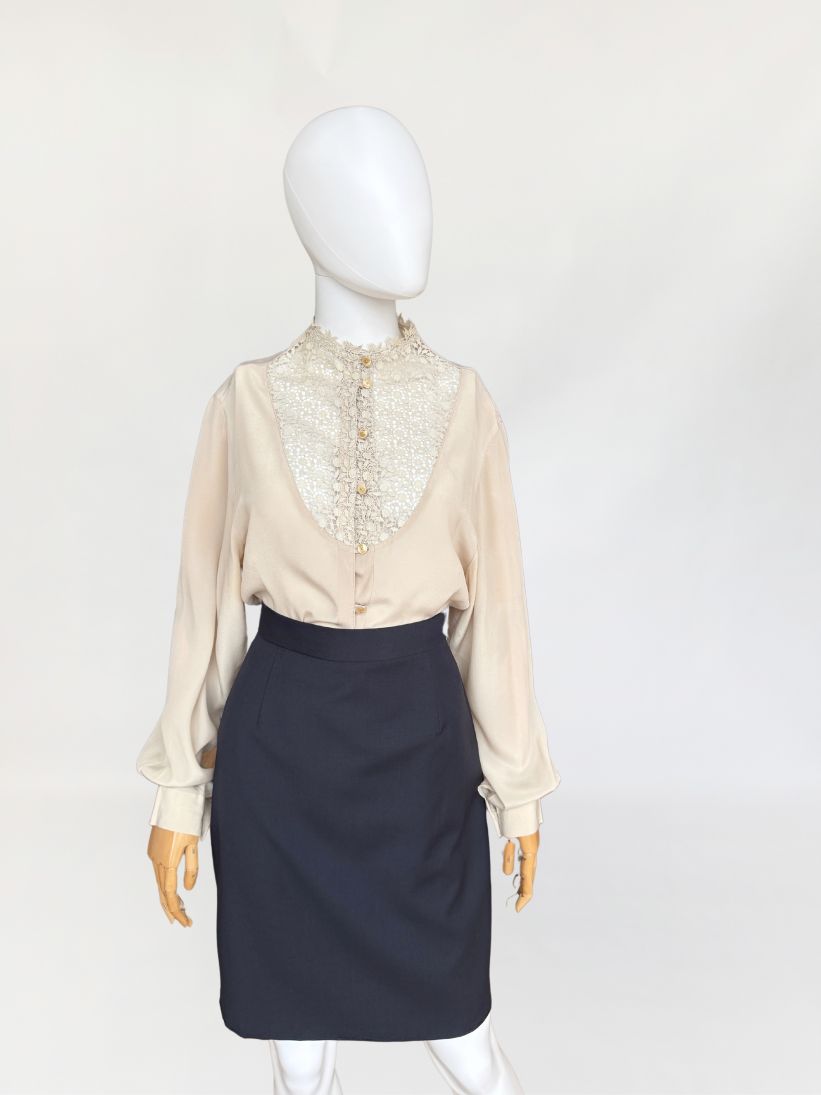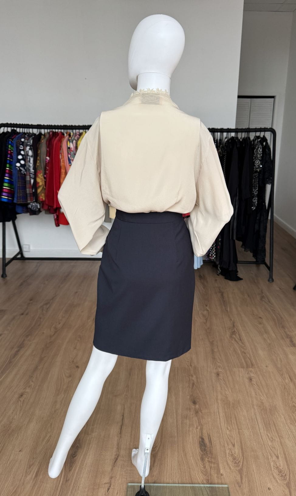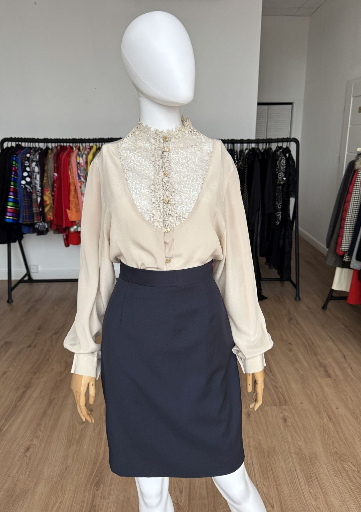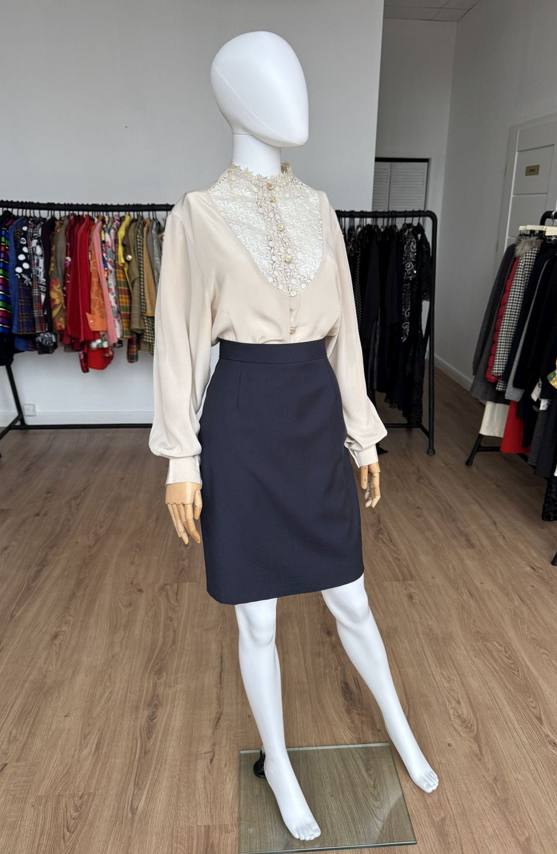 Ołówkowa spódnica od Alberty Feretti, Ferretti Jeans Philosophy. Wykonana z wełny dziewiczej w kolorze atramentowym. Od wewnątrz podszewka.