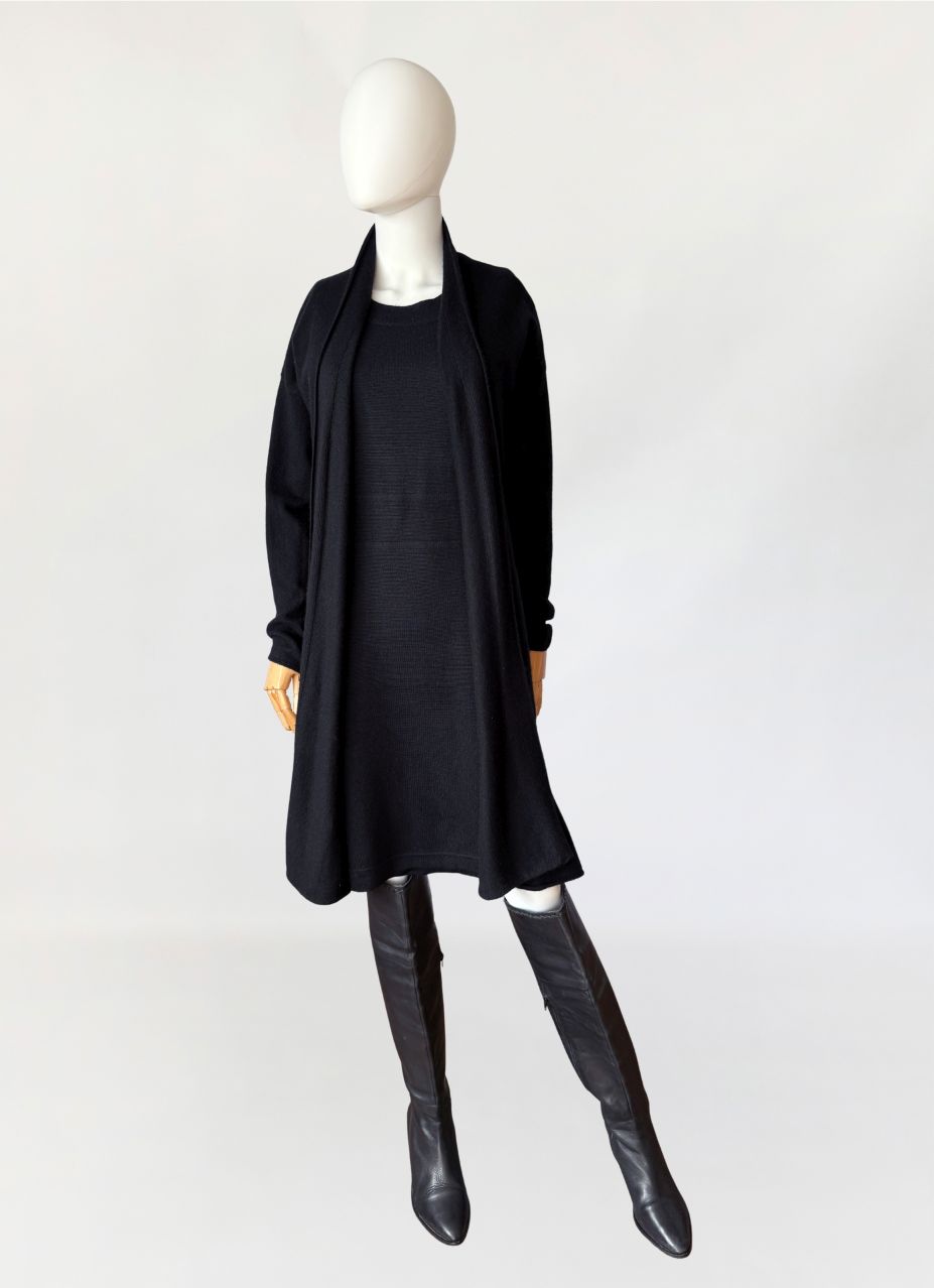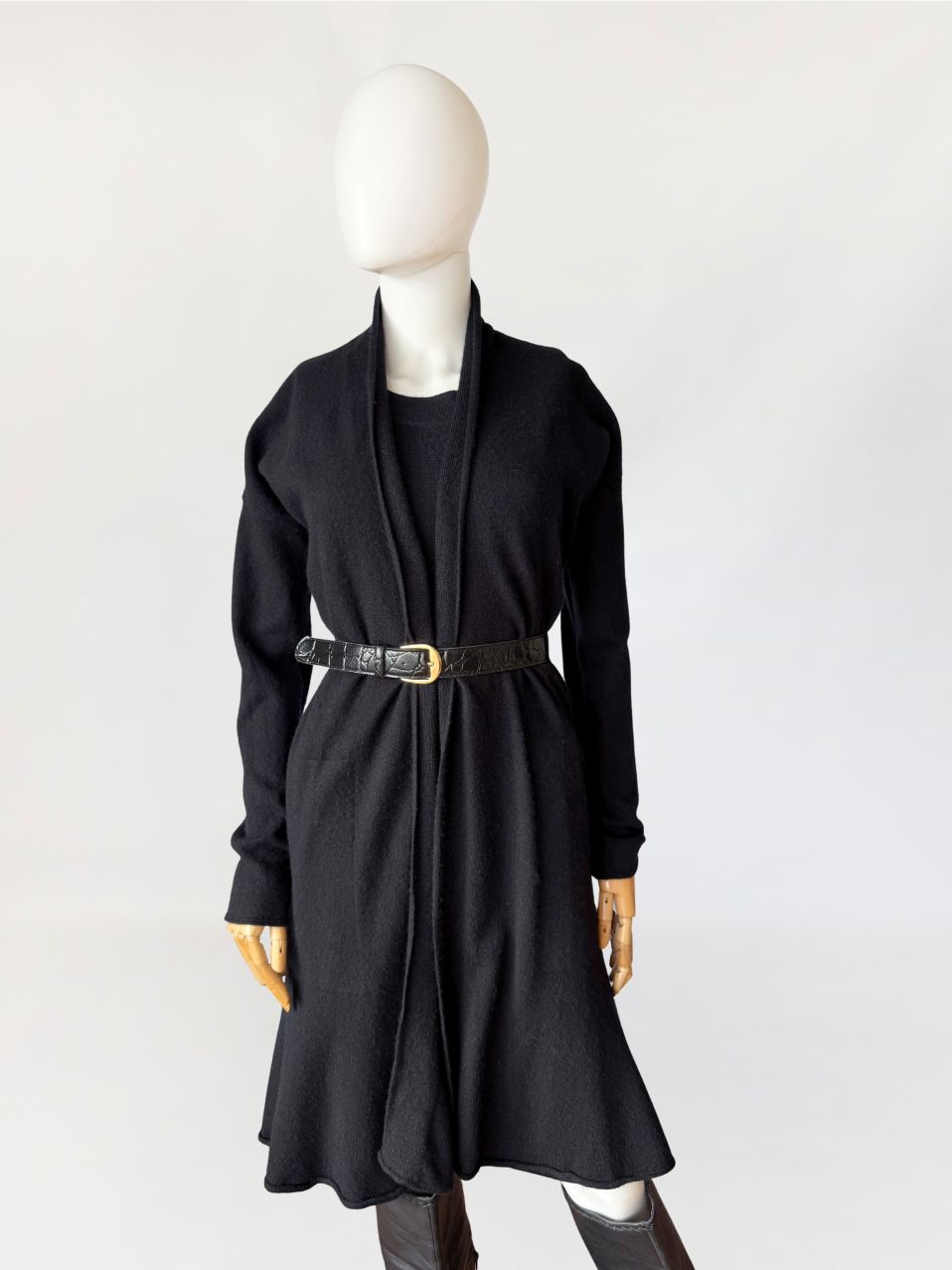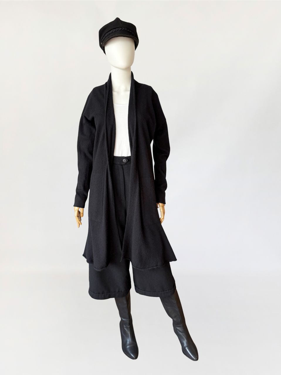 Luksusowy długi kardigan marki Banana Republic wykonany w 100% z kaszmiru, przędzy pochodzącej z legendarnej szkockiej monofaktury Todd&Duncan, jednej z najstarszych i najbardziej cenionych przędzalni świata, specjalizującej się w kaszmirze od 1867 roku. Model o prostym, minimalistycznym kroju typu open front, z miękko opadającymi połami. Dzianina jest wyjątkowo miękka i puszysta w dotyku, charakterystyczna dla kaszmiru z najwyższej półki.