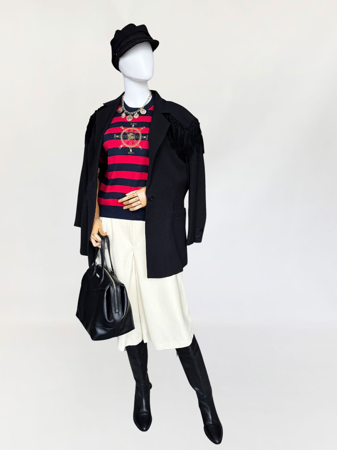 stan: bardzo dobry- stan vintage, drobne zmechacenia na całości dzianiny, kolory granatowo-czerwony nie są tak mocno intensywne jak na zdjęciach