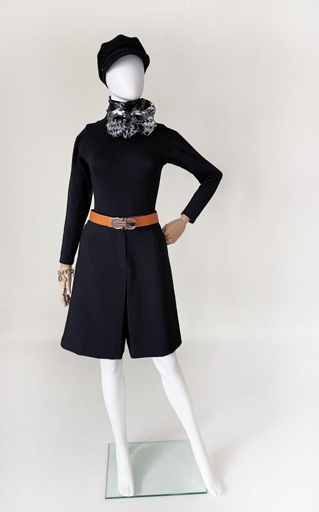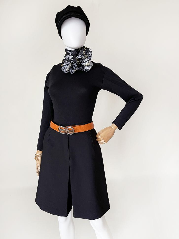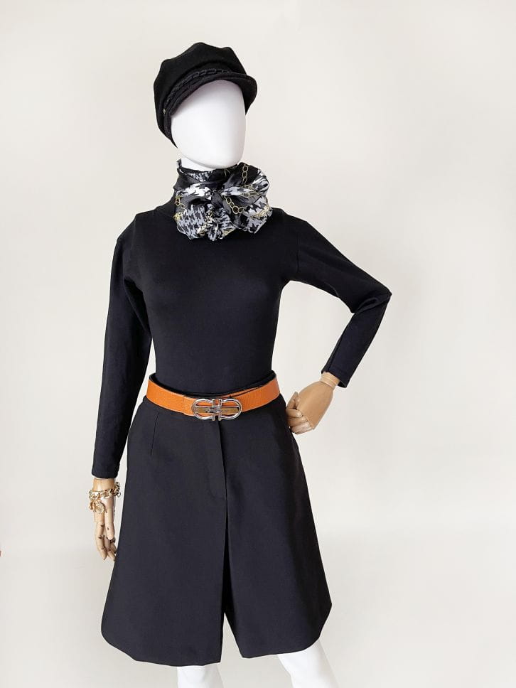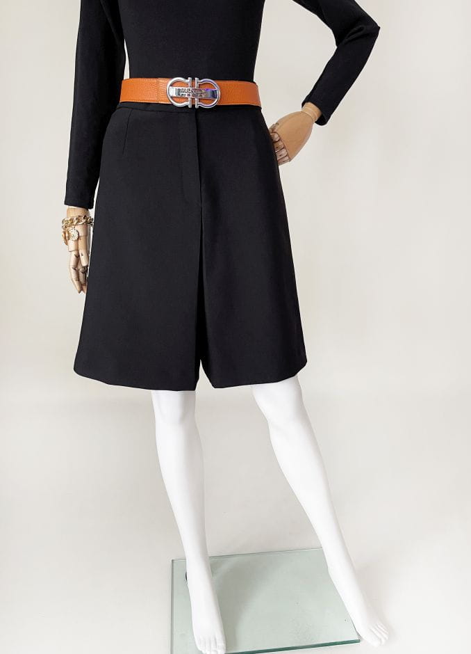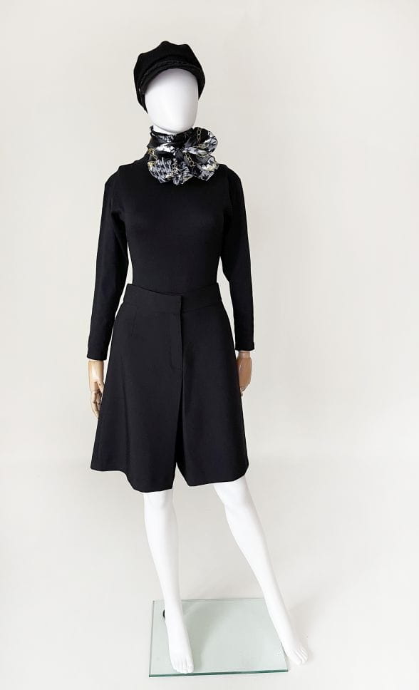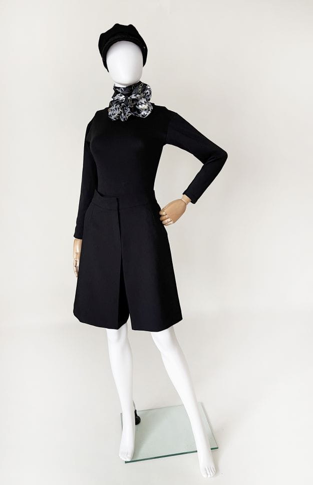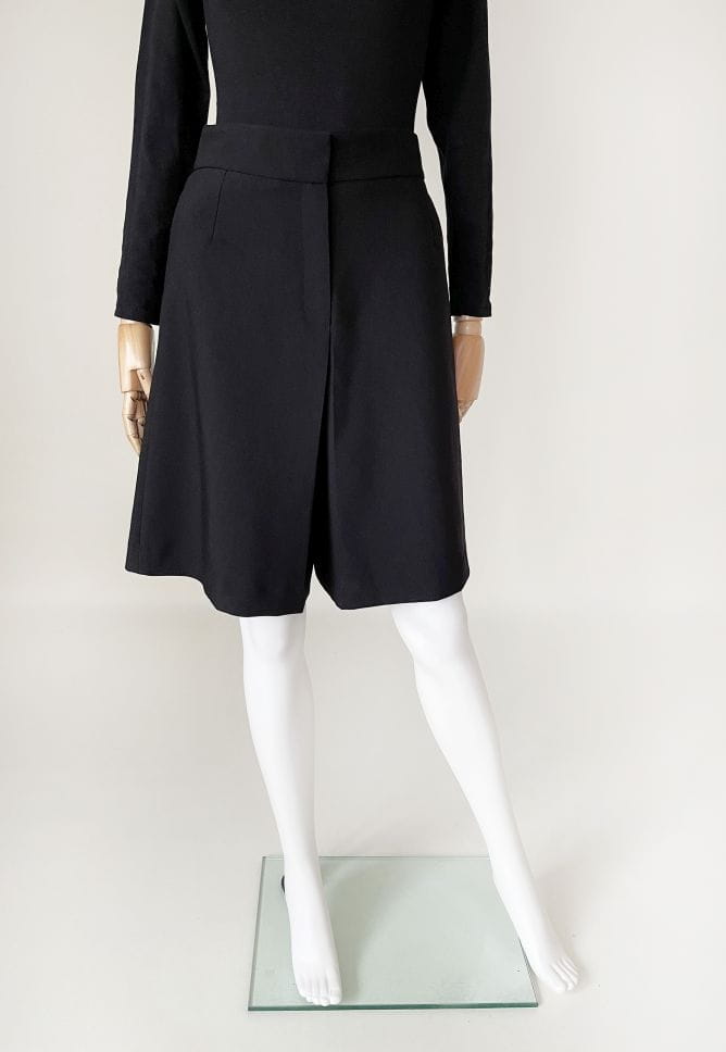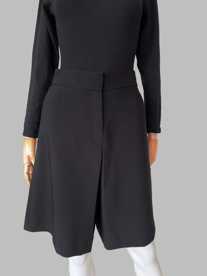 Czarne minimalistyczne kuloty renomowanej francuskiej marki Cacharel. Trapezowy fason z poszerzanymi nogawkami. W bocznych szwach wsuwane kieszenie. Model bez podszewki.