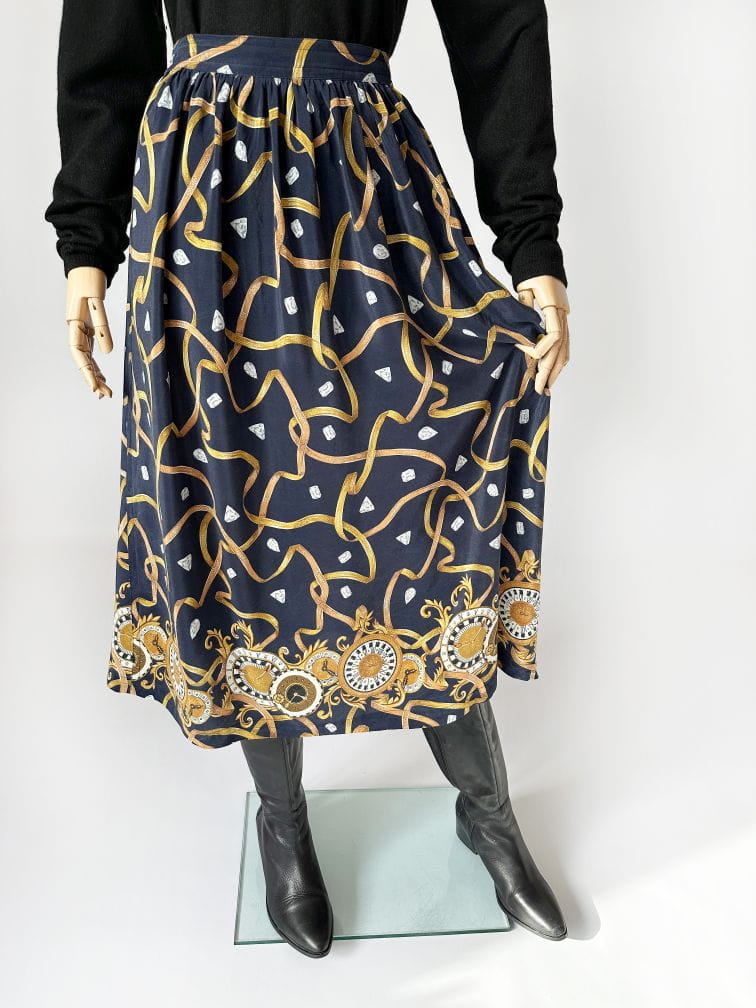 Długa jedwabna spódnica we wzory vintage