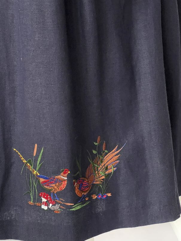 Długa lniana sukienka vintage z haftem