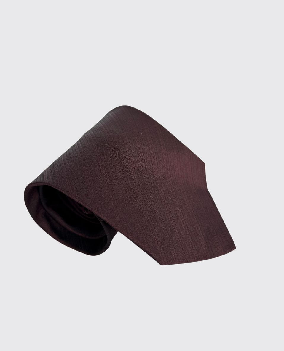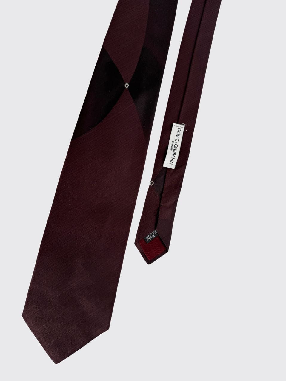Krawat vintage od Dolce&Gabbana. Wykonany w całości z wysokogatunkowego jedwabiu o eleganckim, matowym wykończeniu. Utrzymany w głębokim odcieniu burgundu. Minimalistyczny, biznesowy model