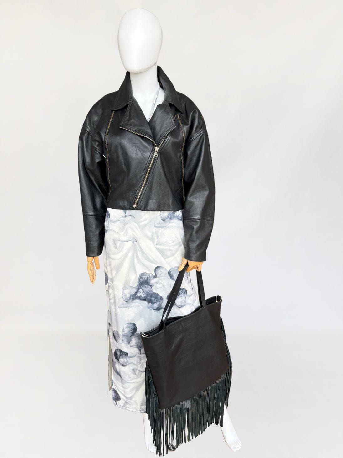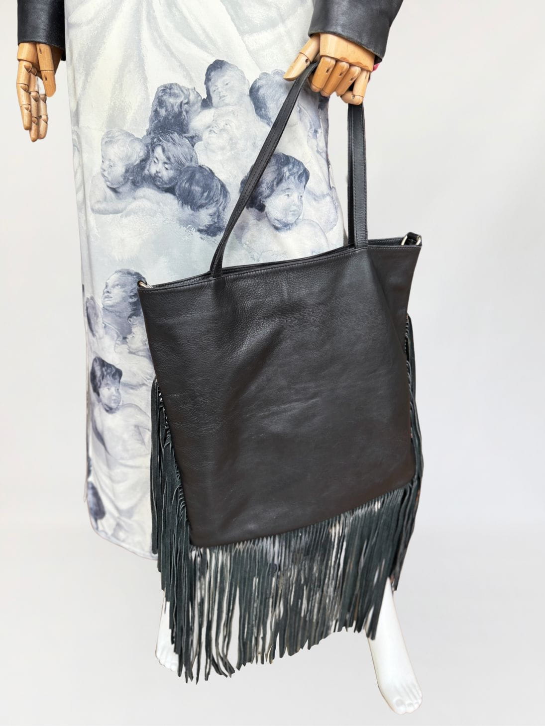 Duża skórzana torba z frędzlami