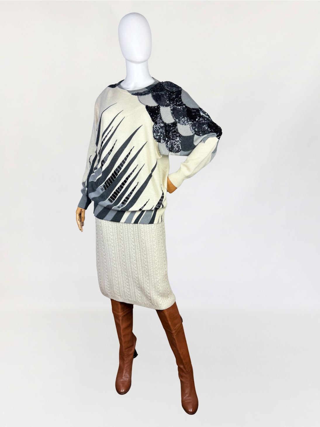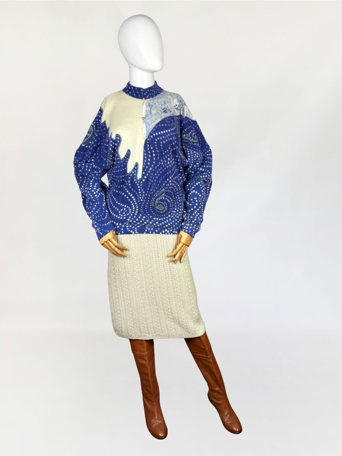 Dzianinowa spódnica vintage warkoczowy splot