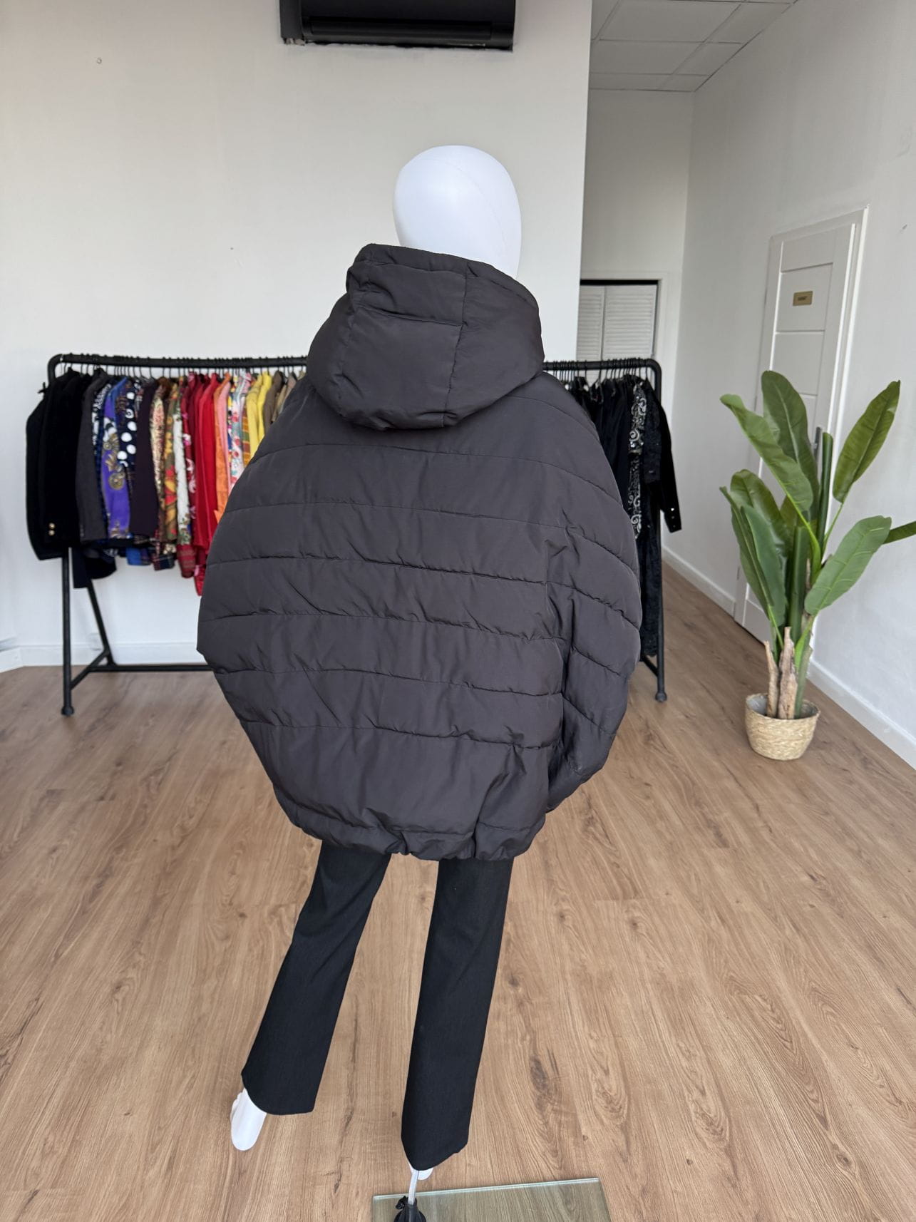 Kurtka jest w kolorze czarnym, jaśniejsze miejsca na zdjęciach to wina światła