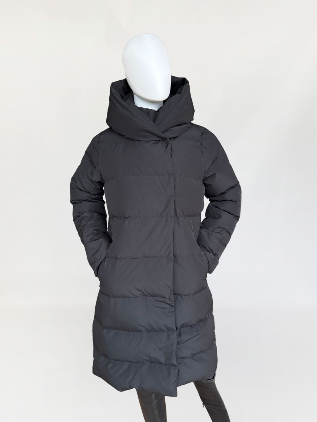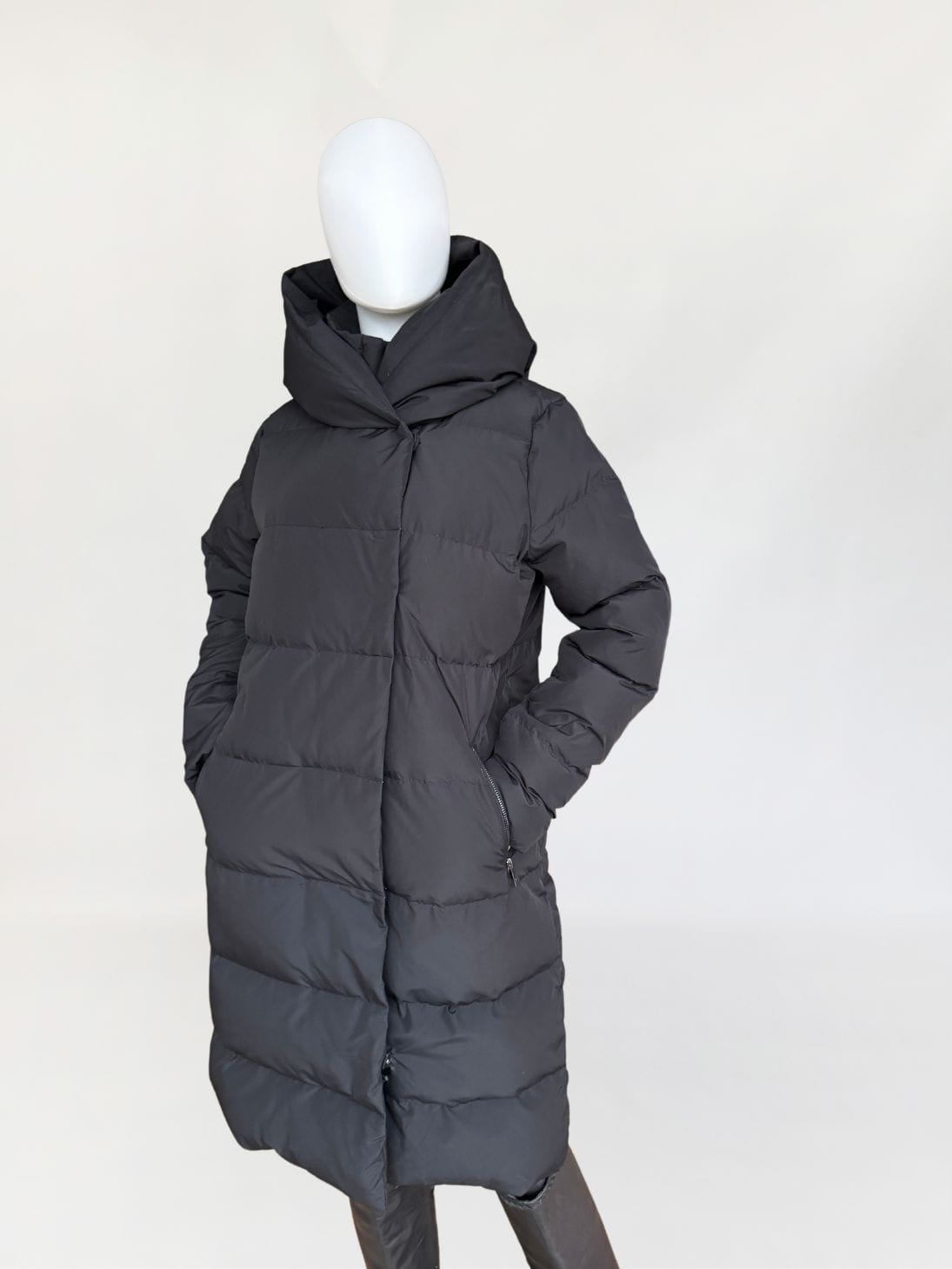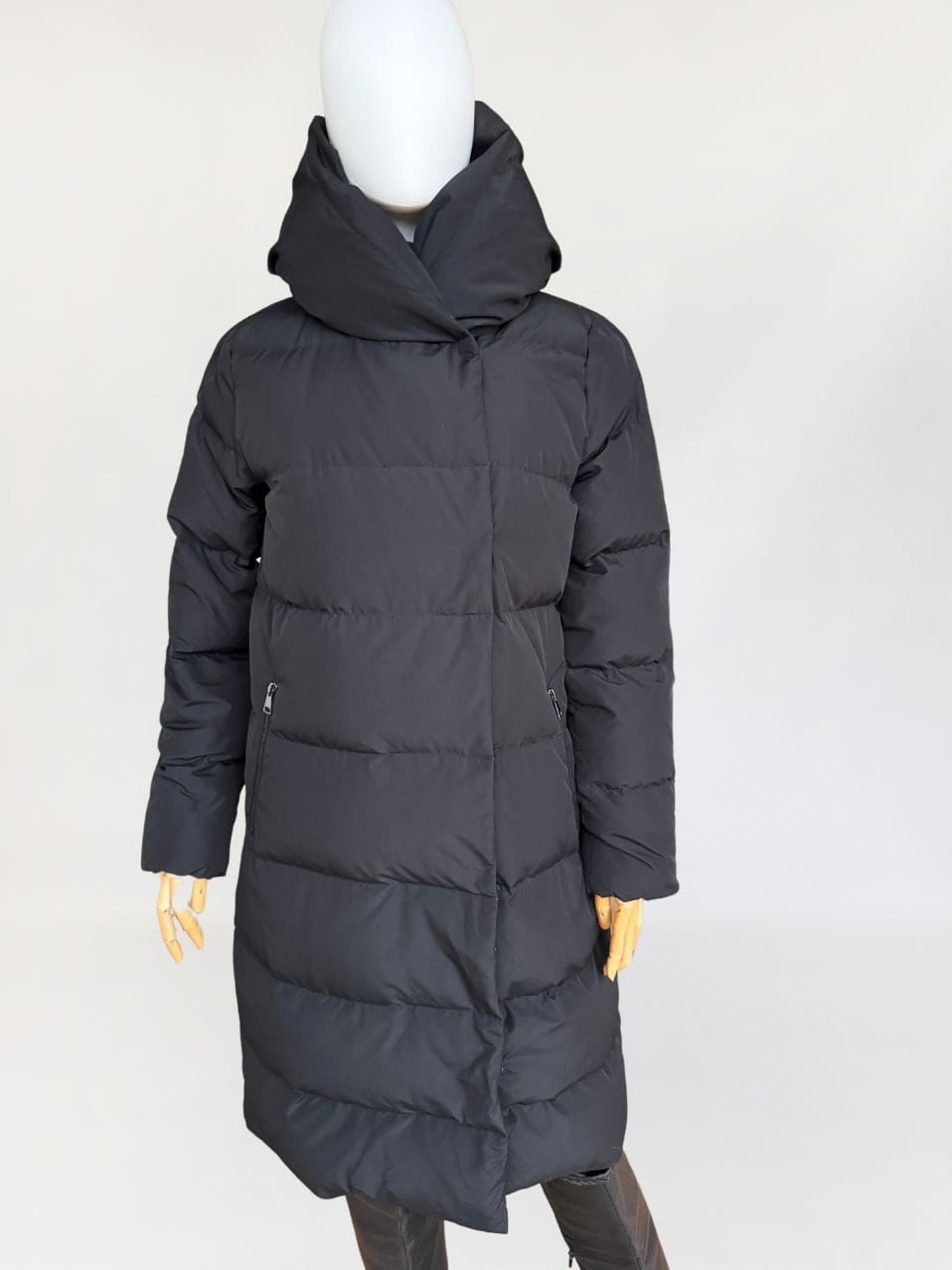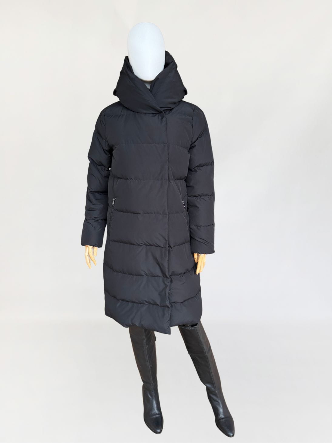 Pikowany płaszcz renomowanej niemieckiej marki Hallhuber. Szalenie ciepły, a przy tym niezwykle lekki. Ocieplany w aż 90% naturalnym puchem i 10% naturalnym pierzem. Klasyczny, dłuższy fason z wysoką stójką i dużym kapturem. Zasuwany na zamek, do tego dodatkowa zewnętrzna przepinana warstwa. Po bokach zasuwane kieszenie.
