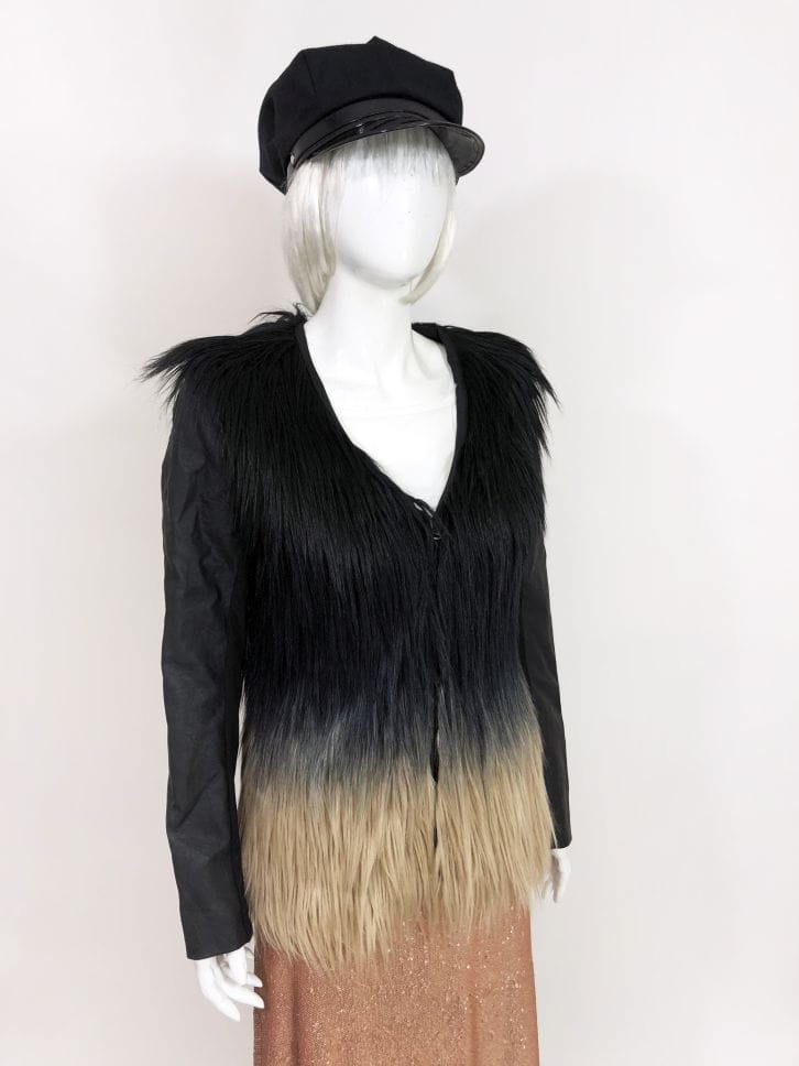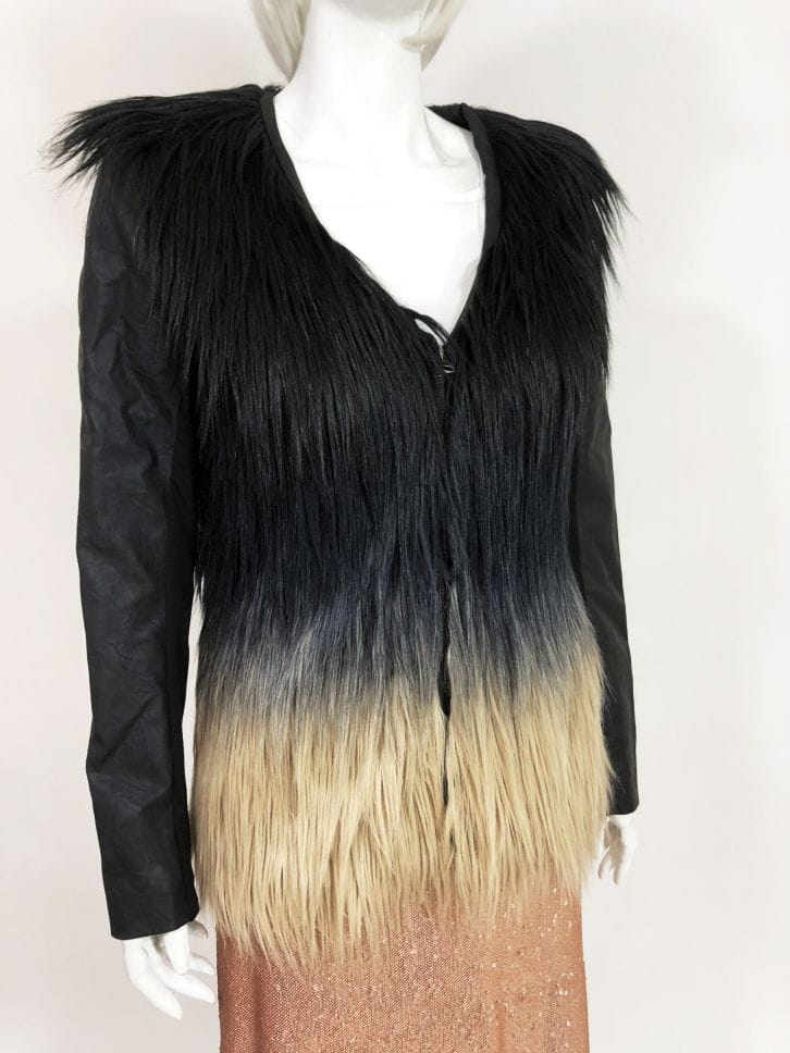 Lekka kurtka marki ICHI. Korpus ze sztucznego futra z długim włosiem i efektem ombre. Dopasowane długie rękawy wykonane ze sztucznej skóry i elastycznej wstawki z tkaniny. Rozsuwany model.
