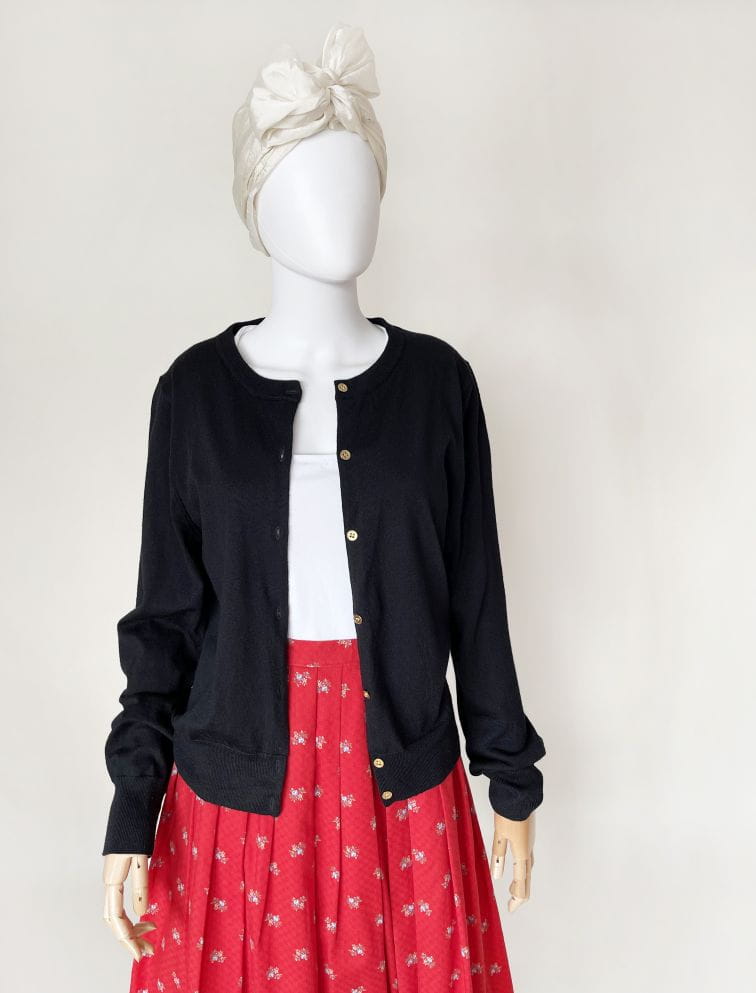 Lekki klasyczny kardigan renomowanej marki J.Crew. Wykonany w całości z dobrej jakości wełny merino. Zapinany na nieduże złote guziki.