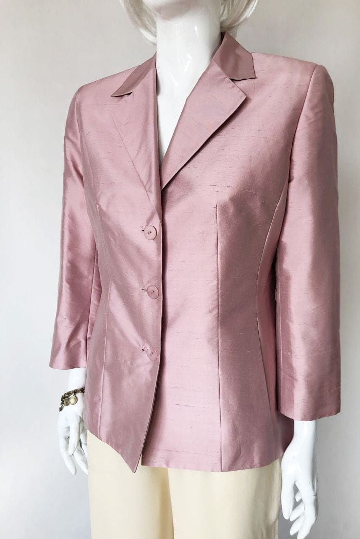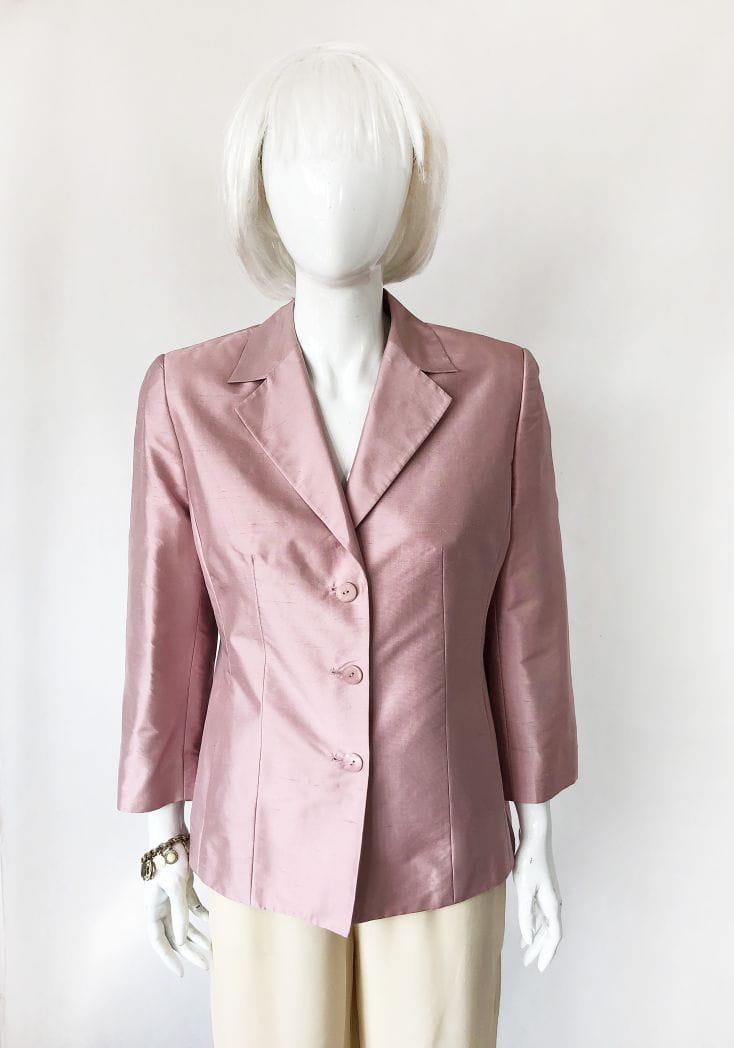 Klasyczny żakiet marki Jake*s wykonany z jedwabiu w jasnym różowym odcieniu. Doskonale skrojony, ramiona lekko usztywniane.