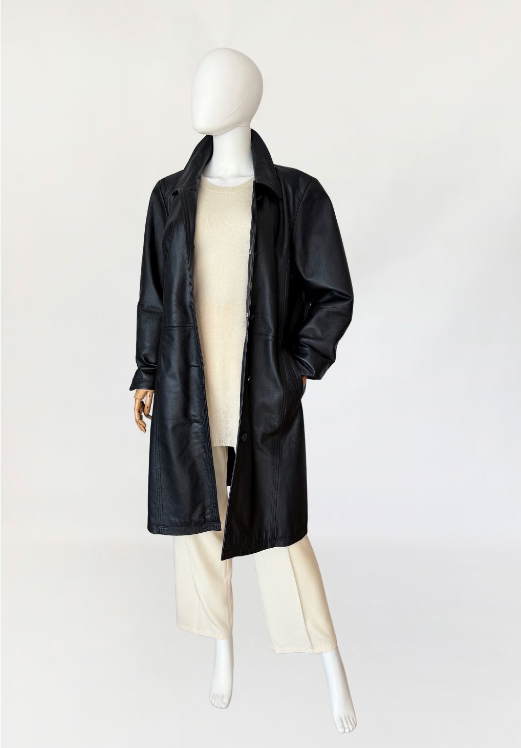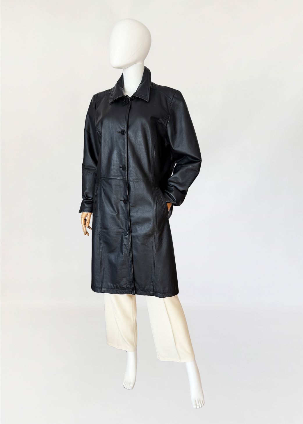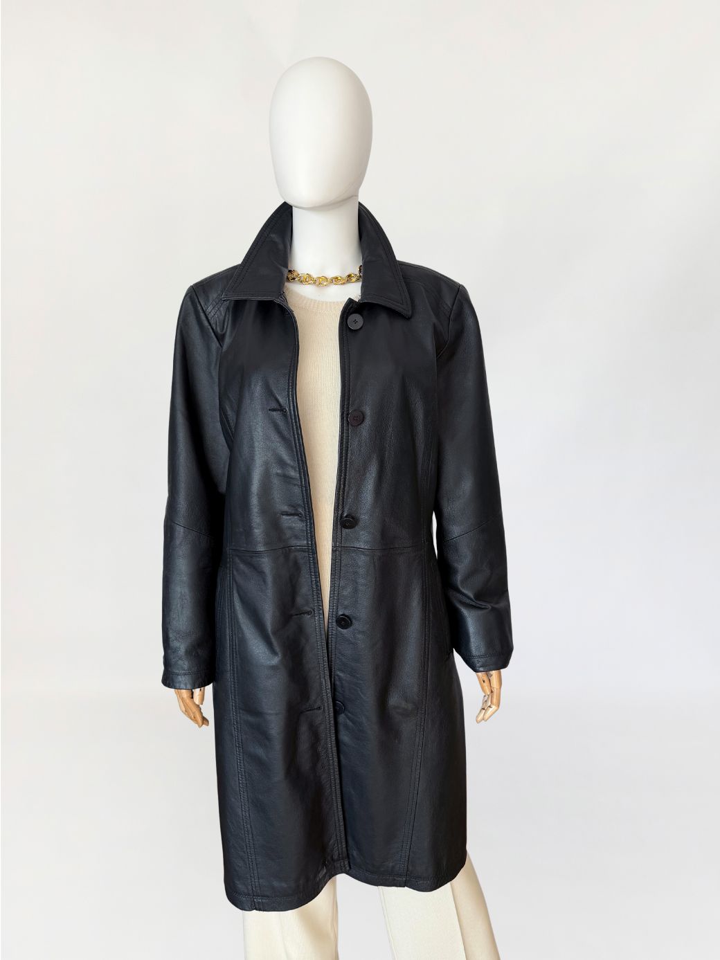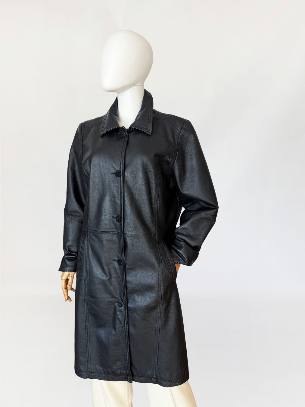 Jednorzędowy skórzany płaszcz vintage