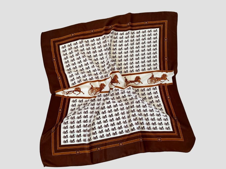 Jedwabna apaszka vintage we wzory powozy