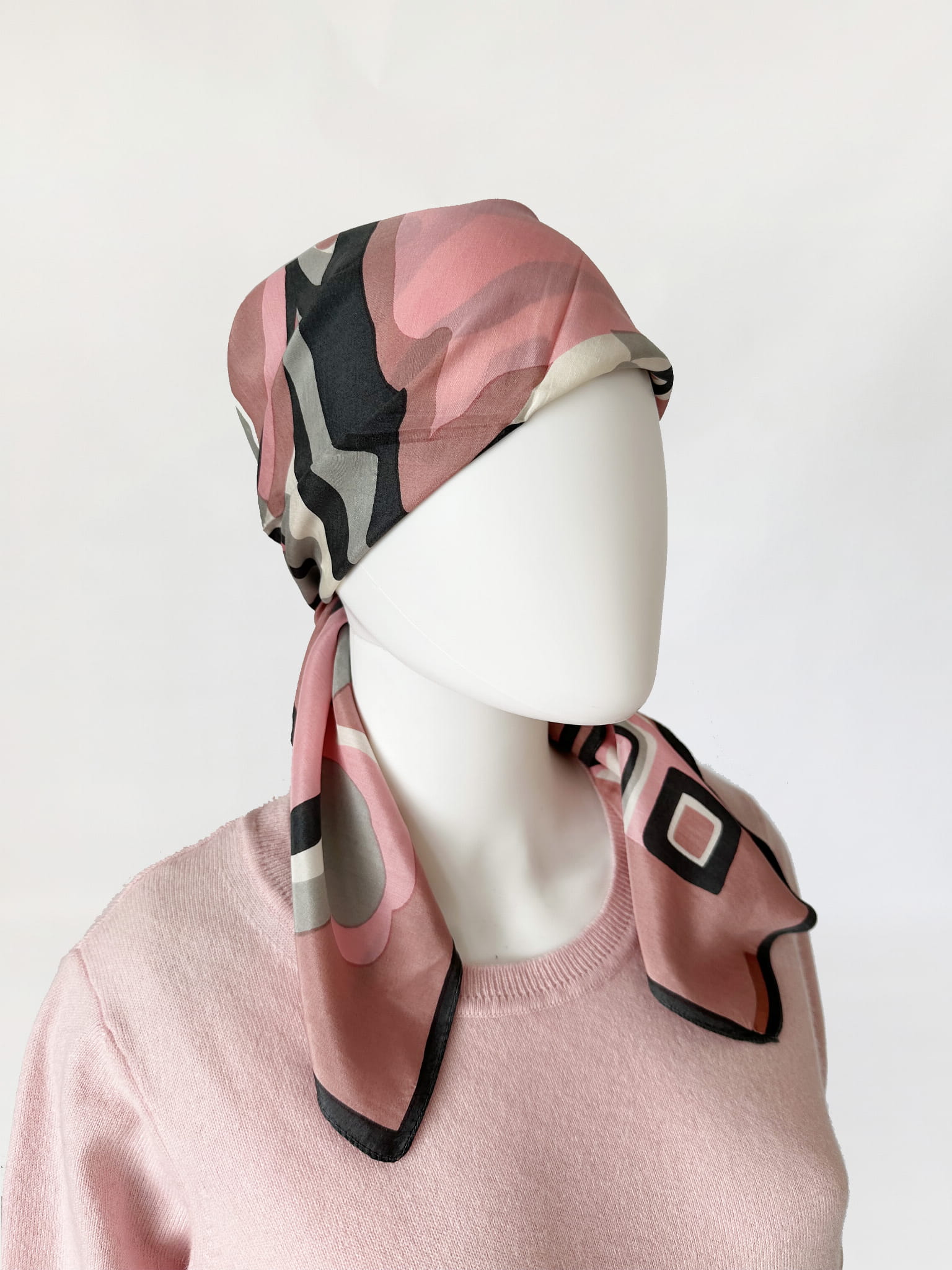 Jedwabna włoska apaszka vintage w artystyczne wzory.