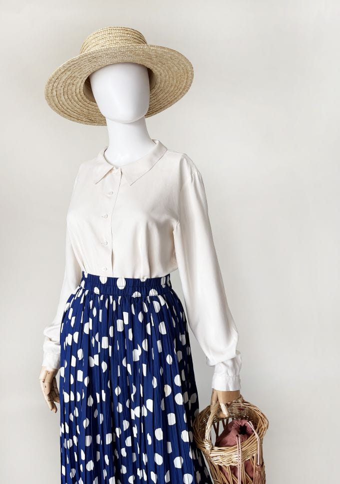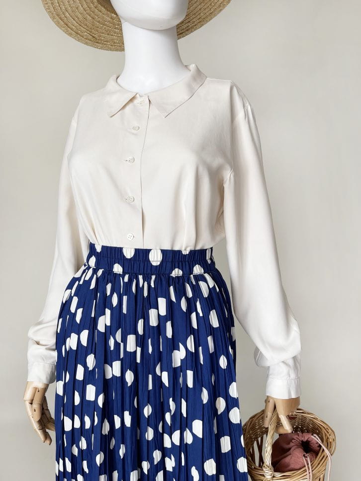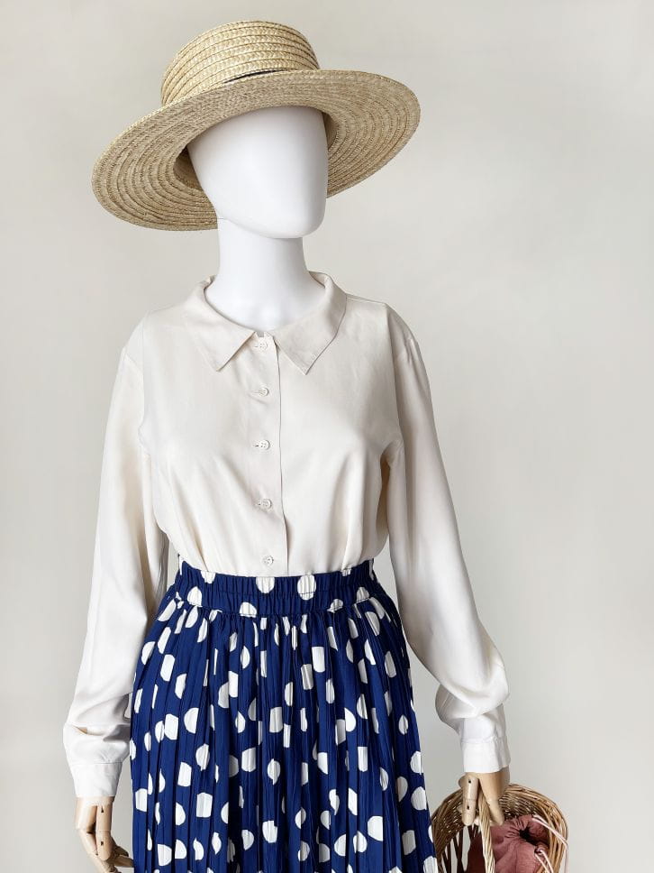 Francuska koszula vintage o prostym fasonie z długimi rękawami i niedużym kołnierzem. Wykonana z mięsistego jedwabiu w mlecznym kolorze.