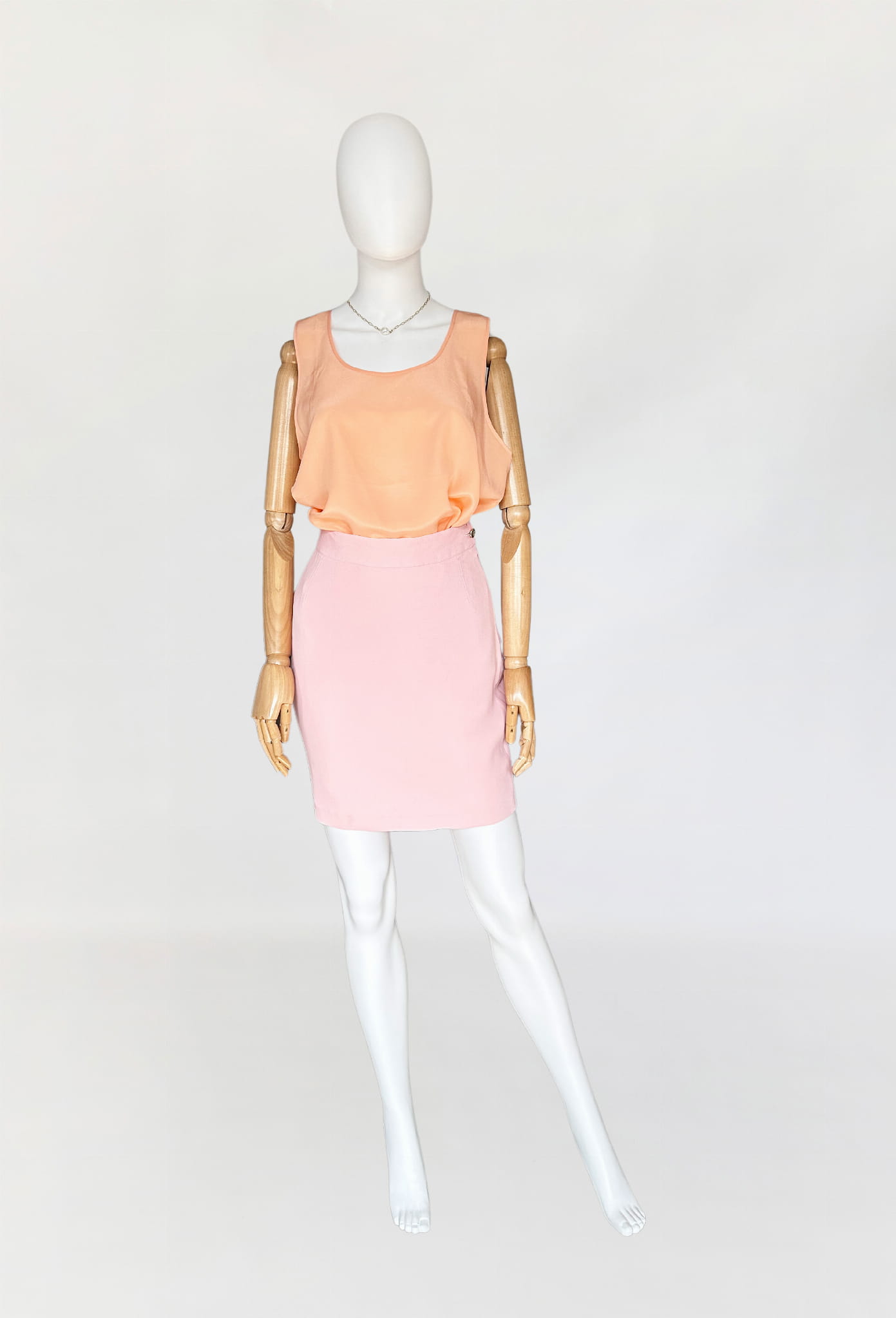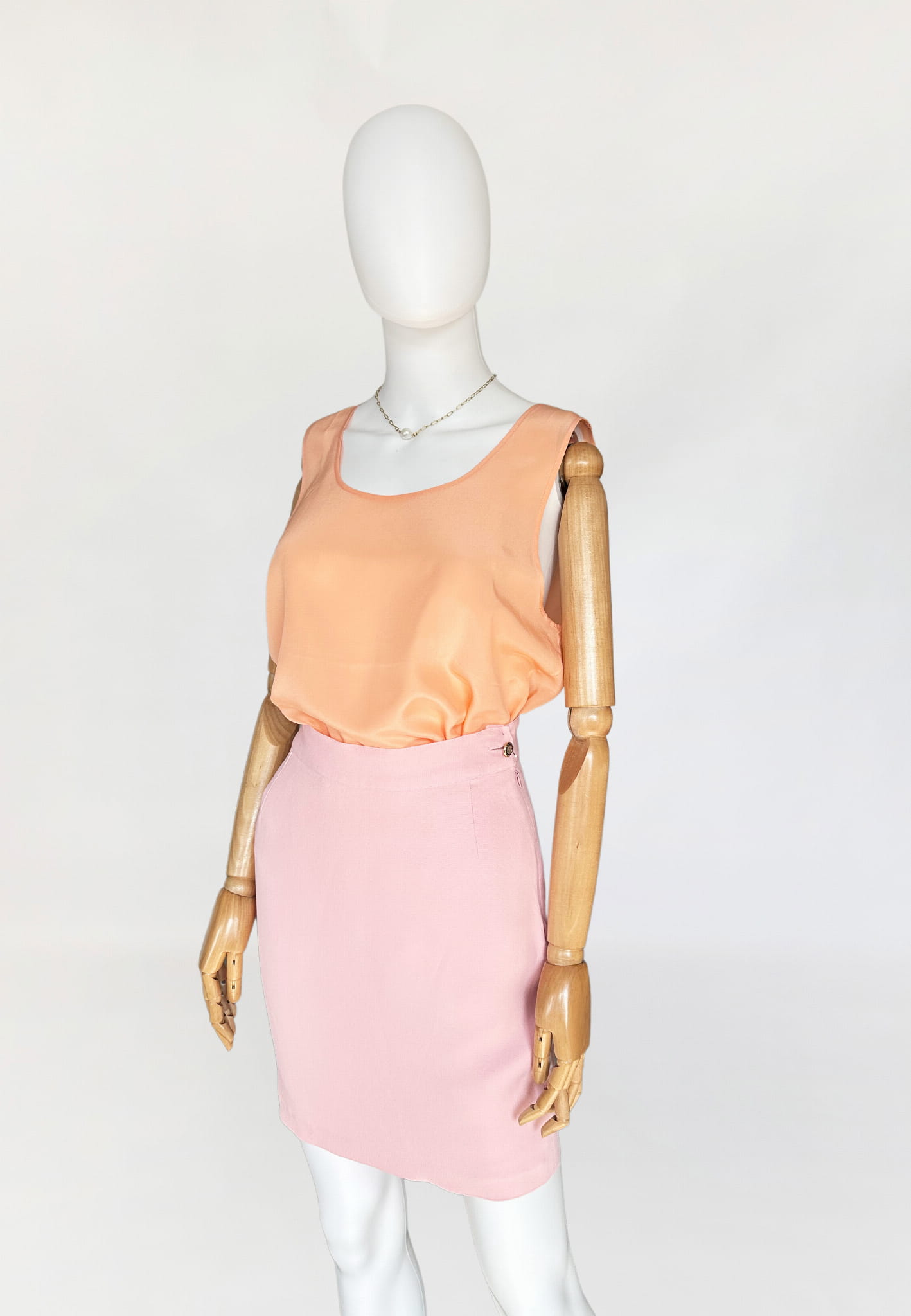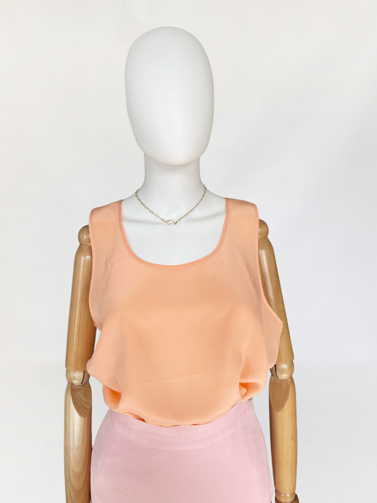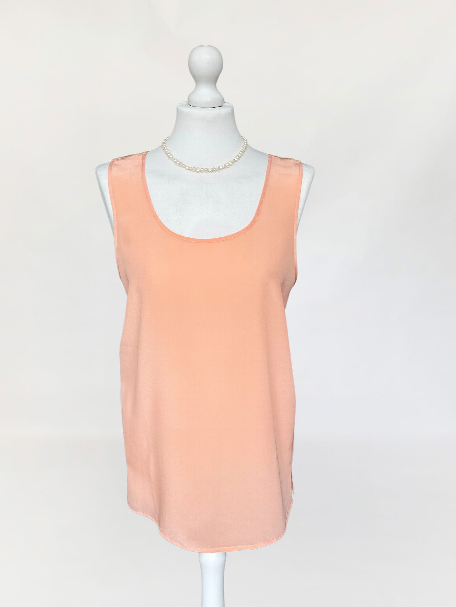 Minimalistyczny włoski top wykonany z lekkiej jedwabnej tkaniny. Klasyczny fason bez rękawów.