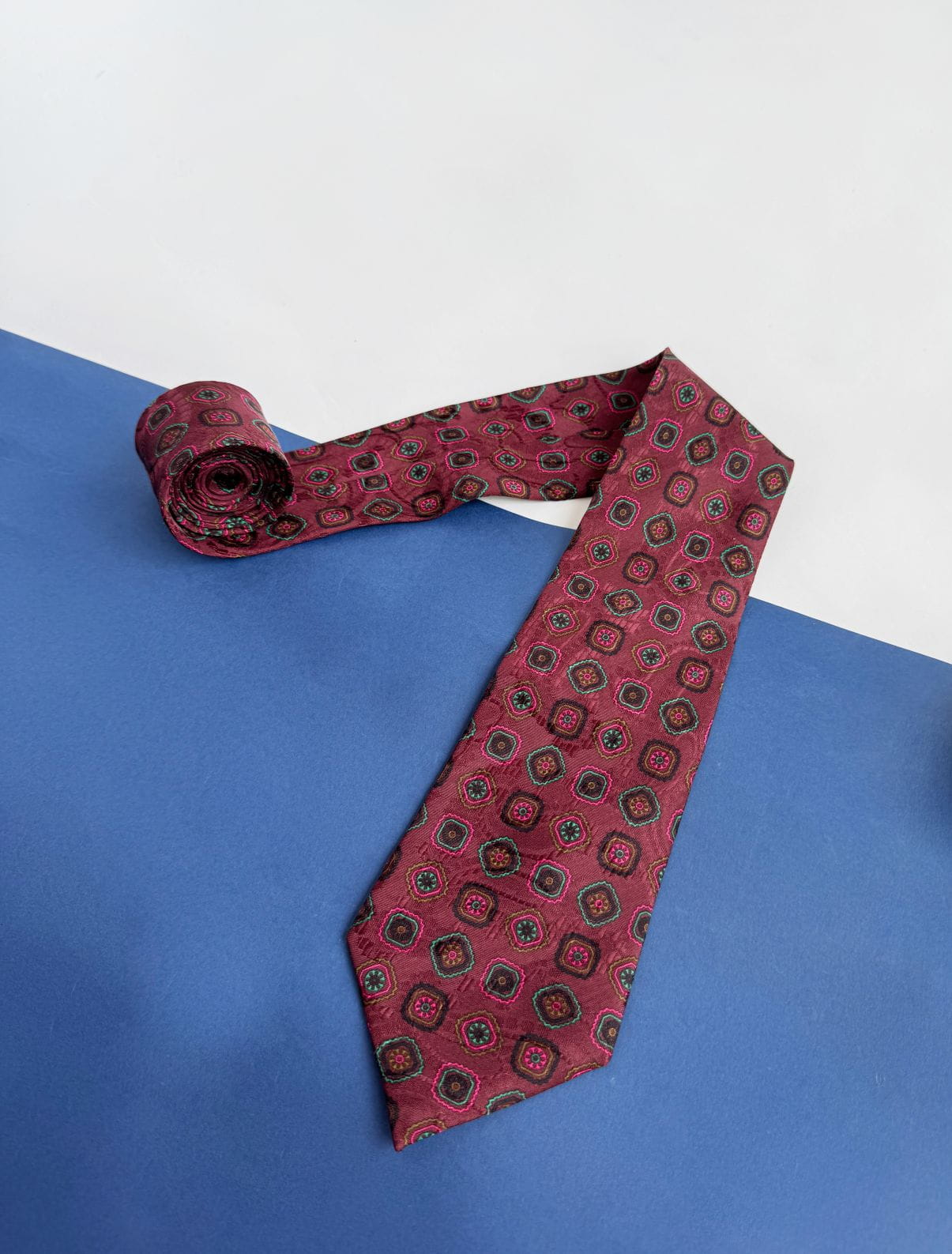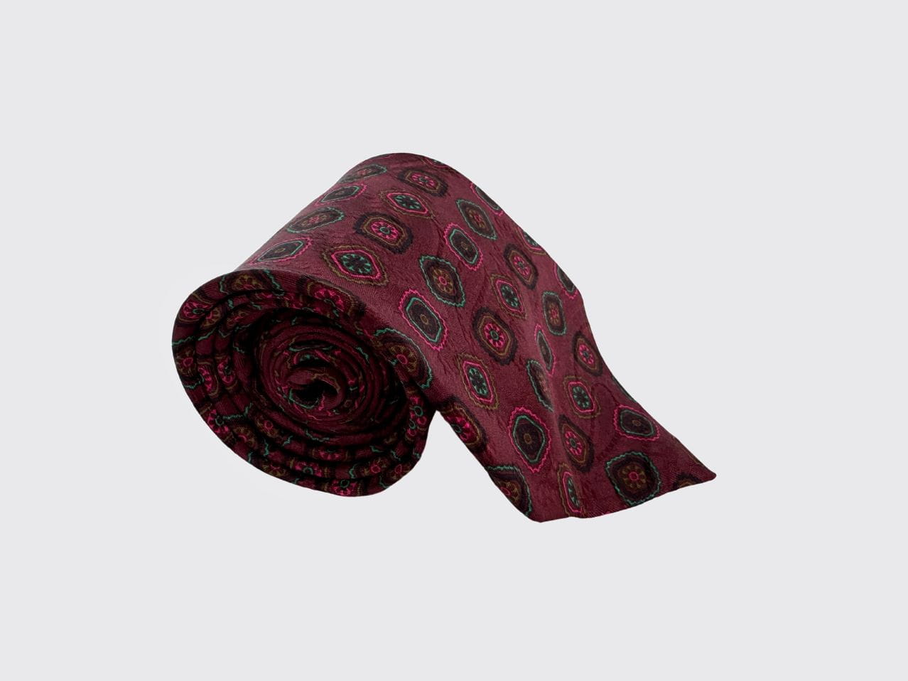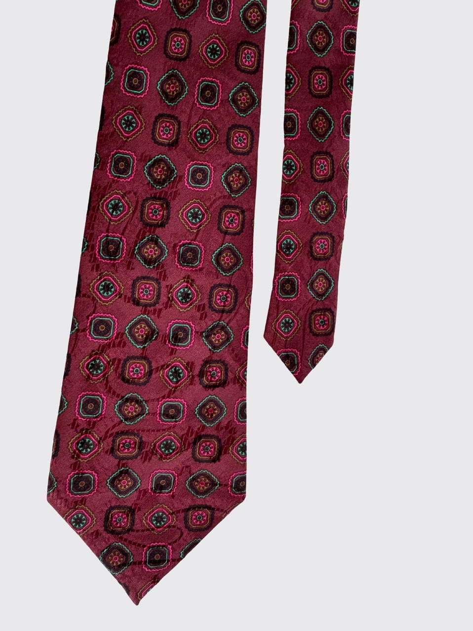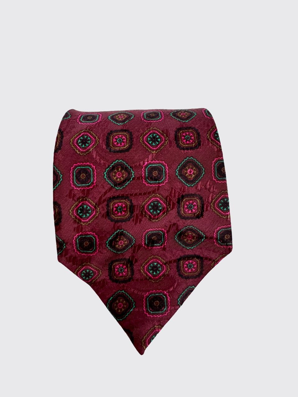 Włoski krawat vintage uszyty z naturalnego jedwabiu. Deseń w drobne regularne wzory.