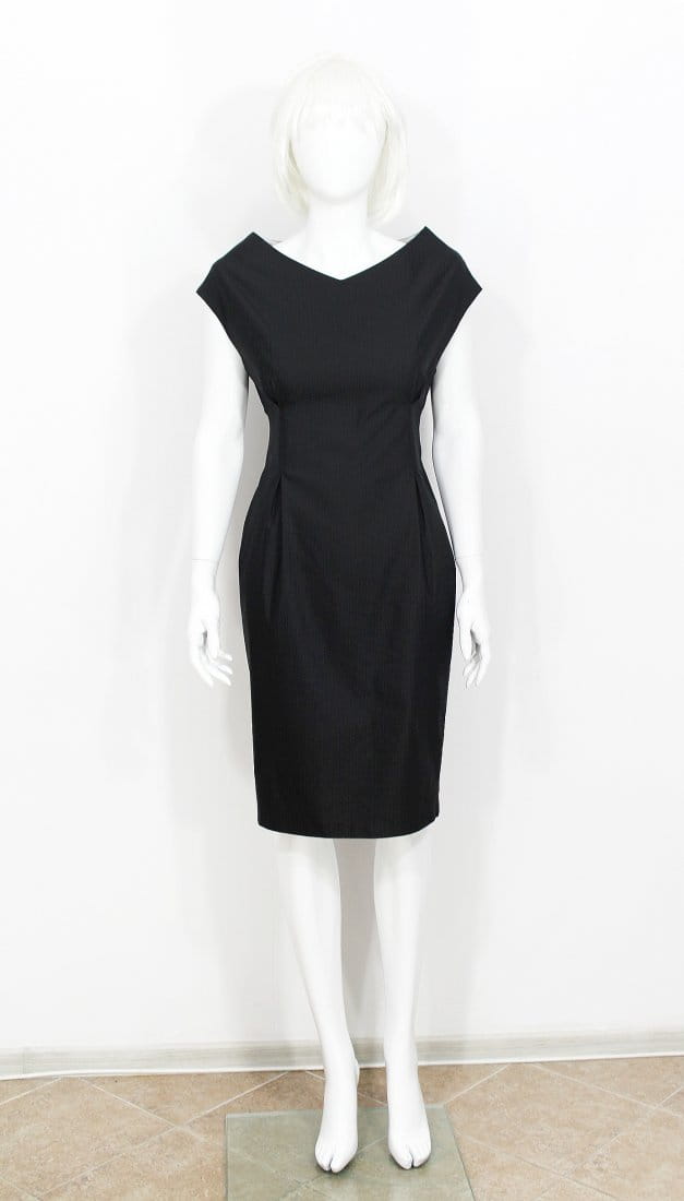Rewelacyjna, idealnie skrojona sukienka polskiej projektantki Kasi Zapały. Krój dopasowany, ołówkowy - nie krępujący ruchów, mocno taliowana. Z przodu i z tyłu zakładki. Deseń w delikatne prążki. Idealna do biura, na spotkania biznesowe, profesjonalnie elegancka. Z tyłu u dołu rozcięcie. Zasuwana na długi kryty suwak na plecach. Rozmiar 36.
