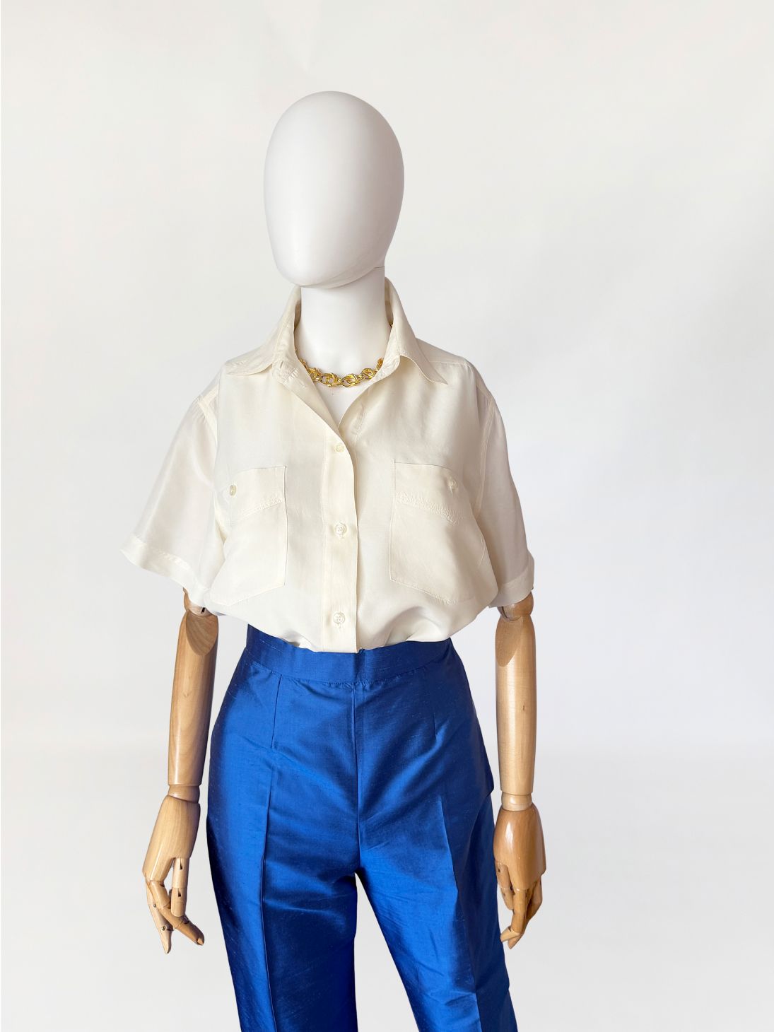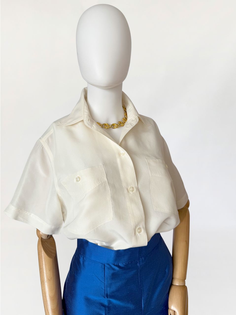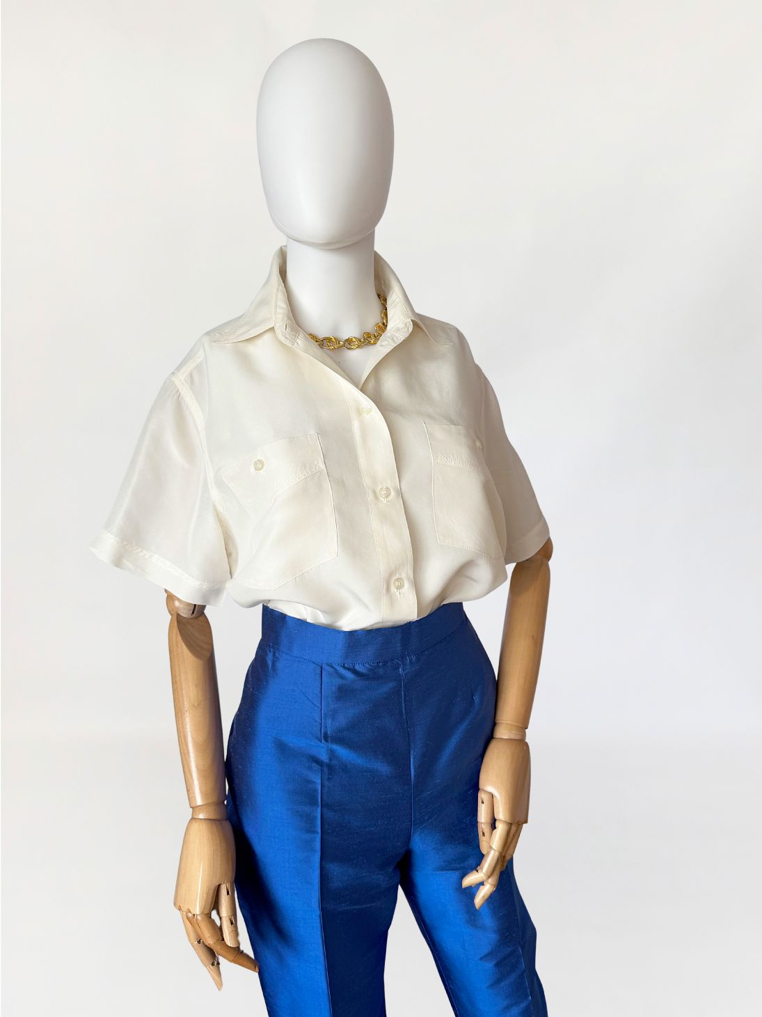 Klasyczna jedwabna koszula vintage z krótkimi rękawami