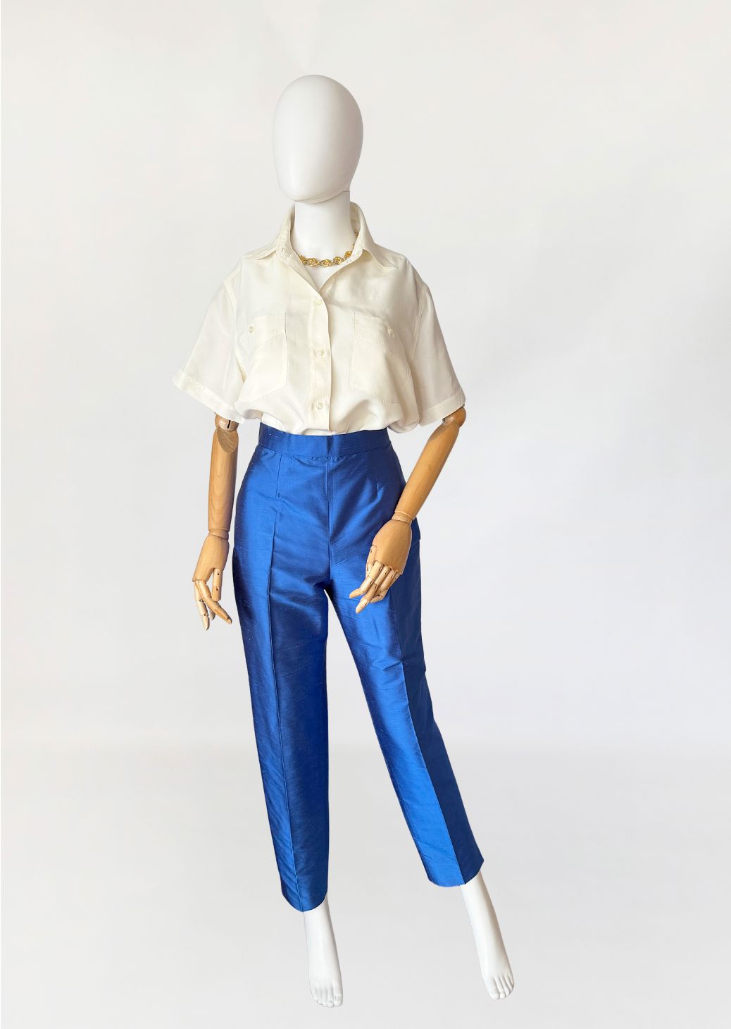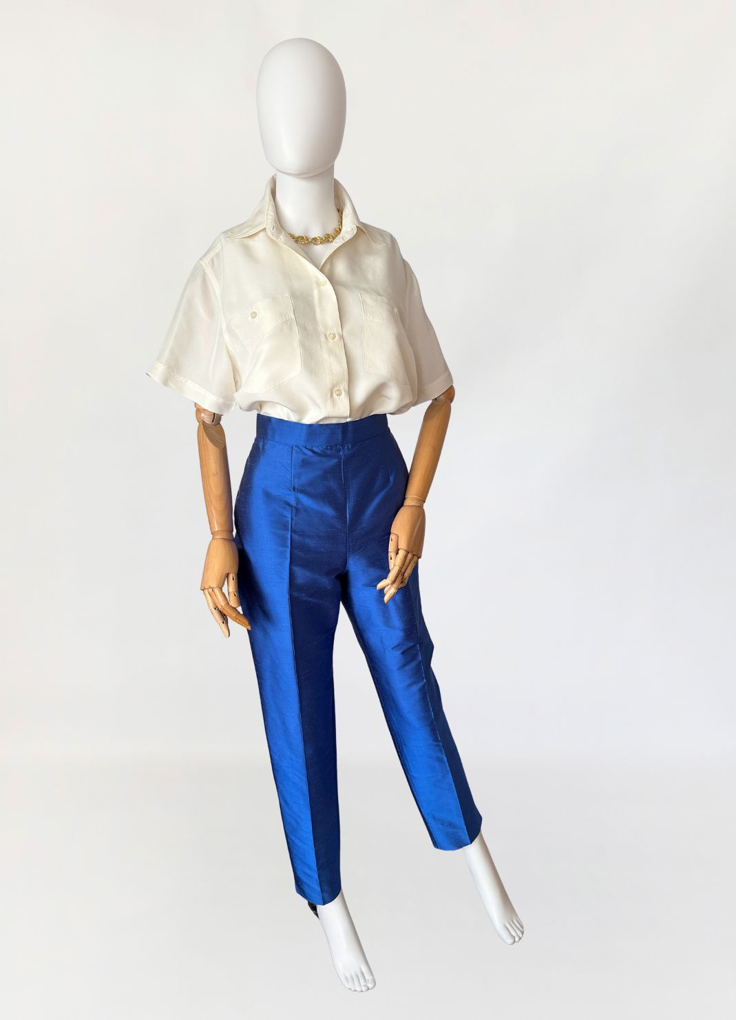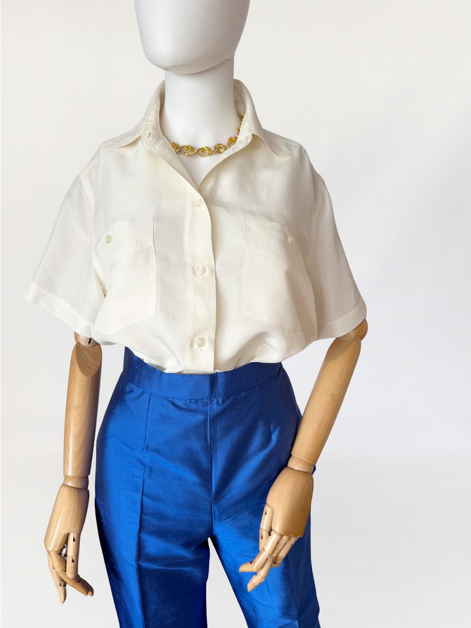 Klasyczna jedwabna koszula vintage z krótkimi rękawami