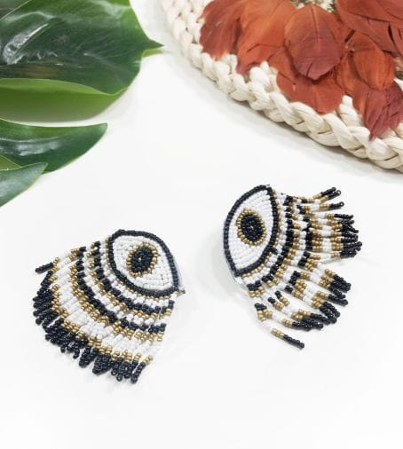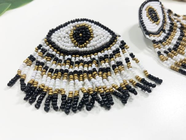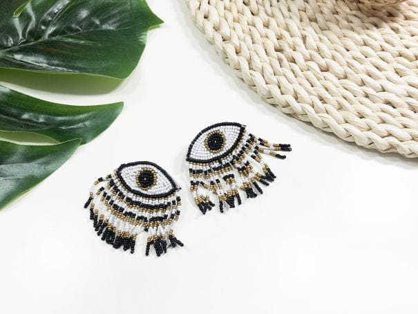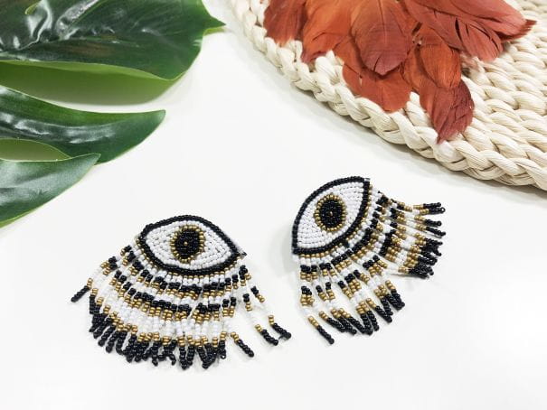 Niebanalne kolczyki z motywem oka i frędzlami z koralików