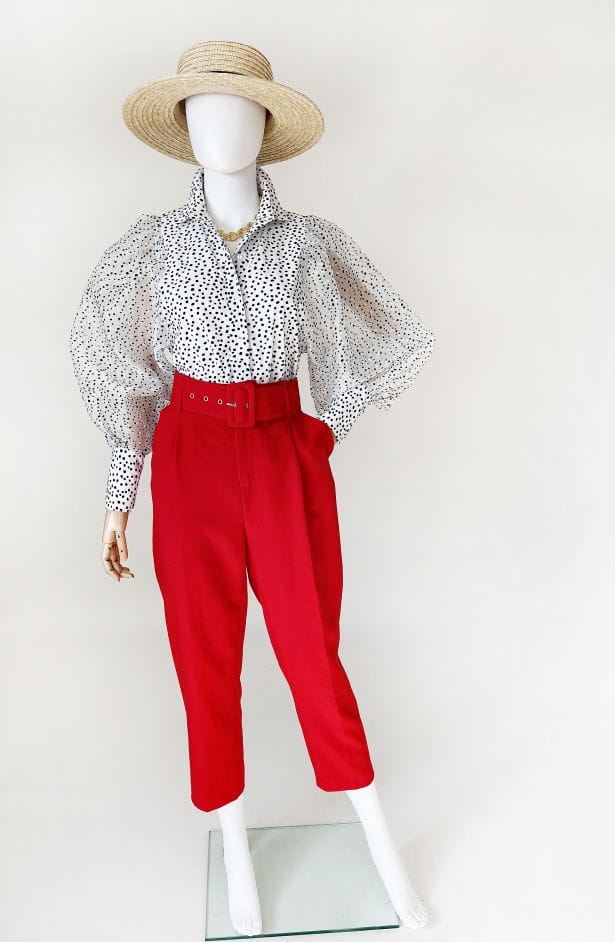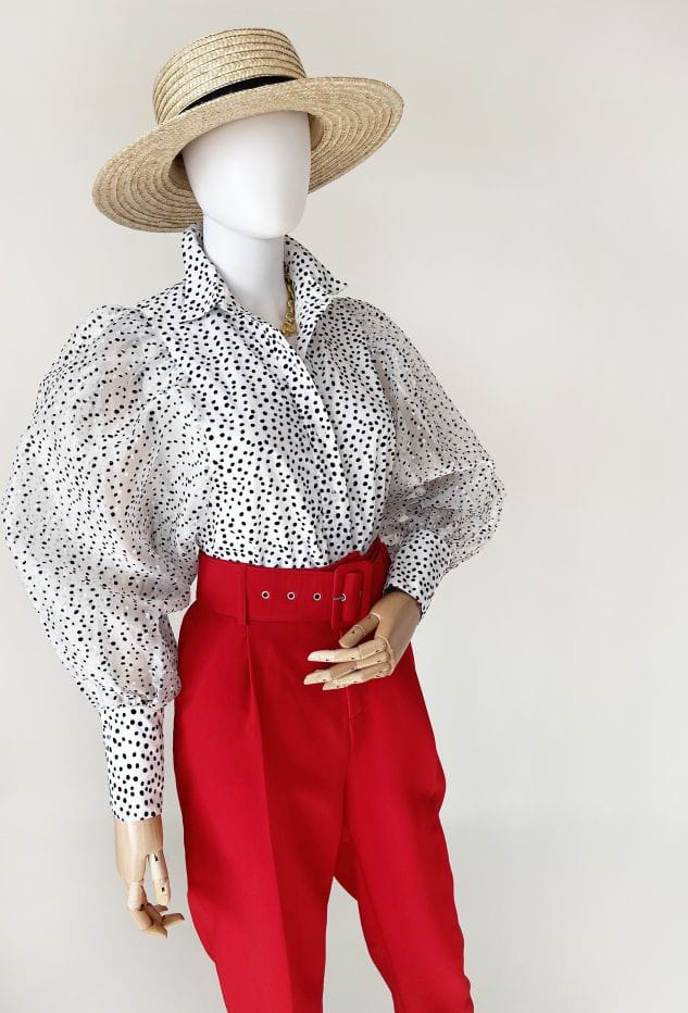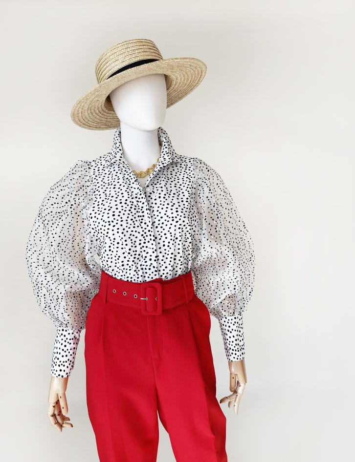 Koszulowa bluzka w kropki z balonowymi rękawami