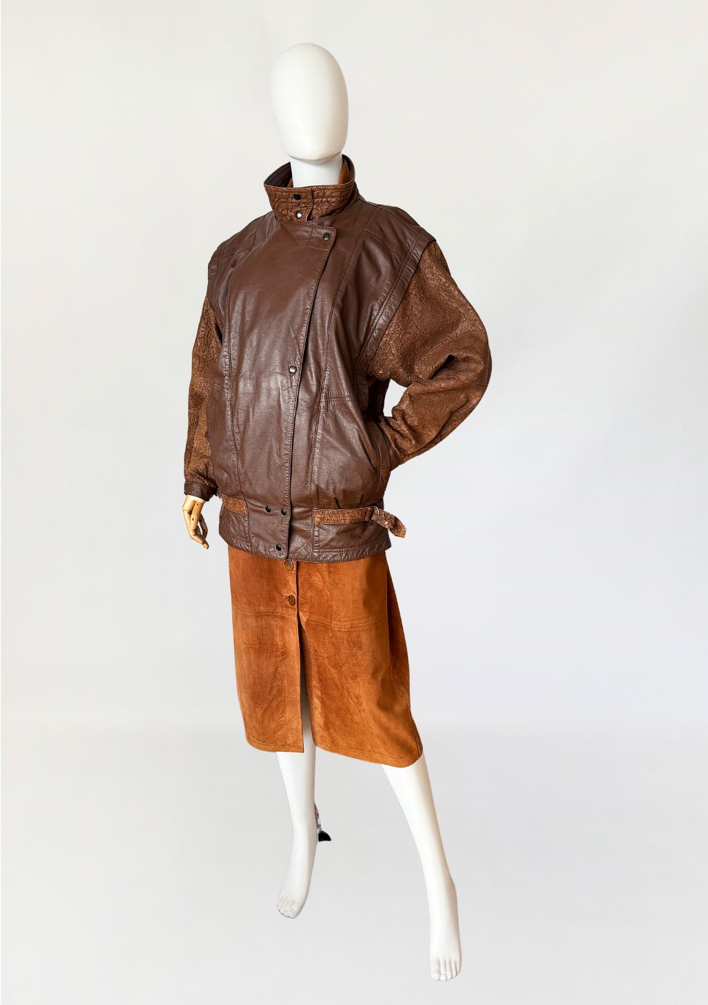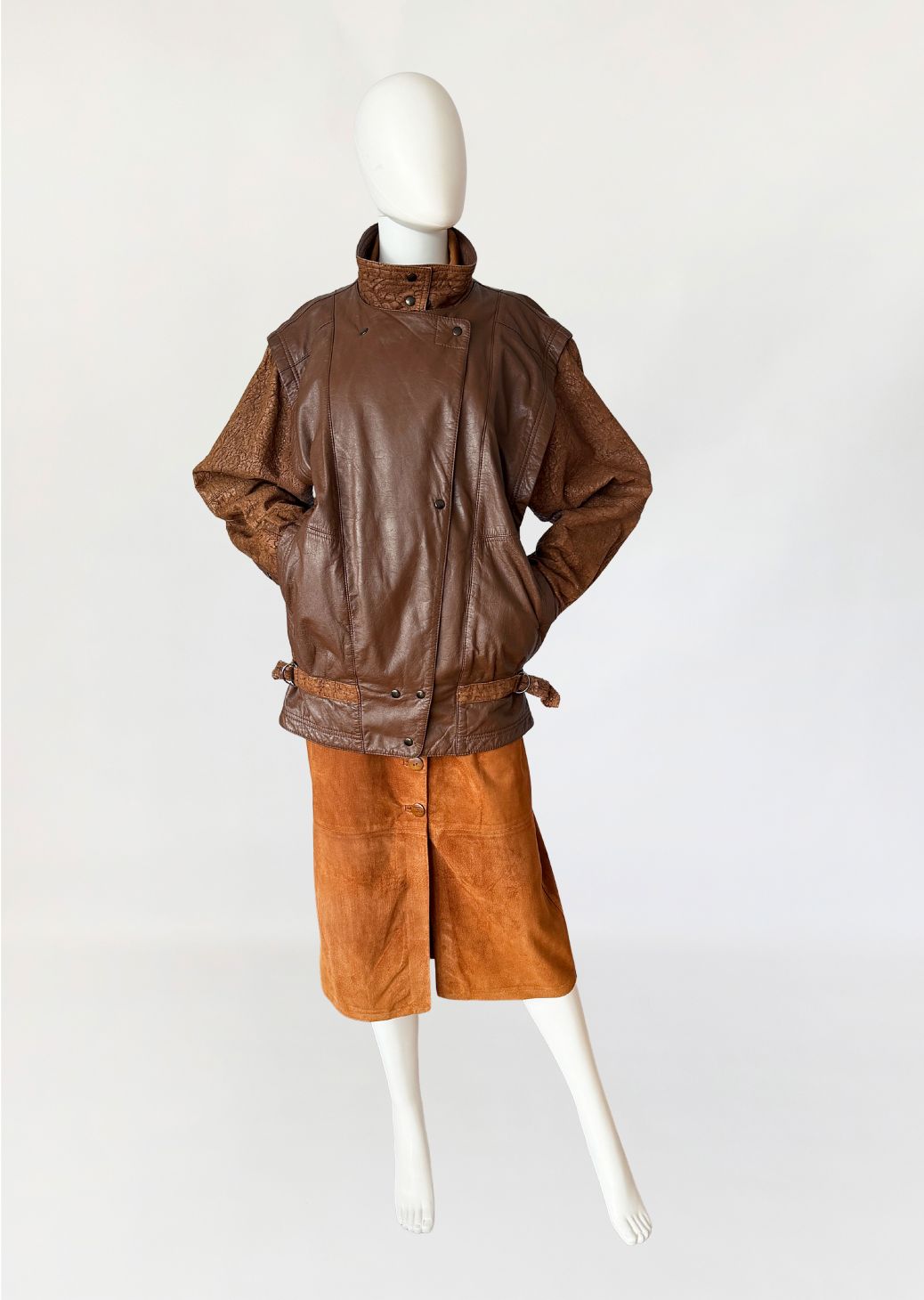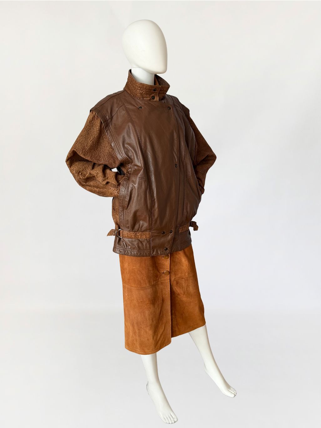 Kurtka vintage z dwóch rodzajów skóry