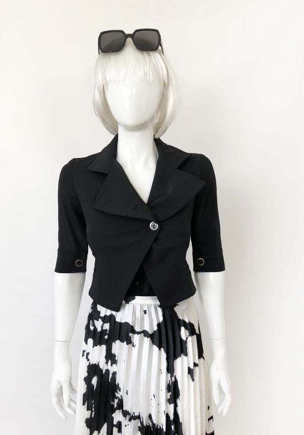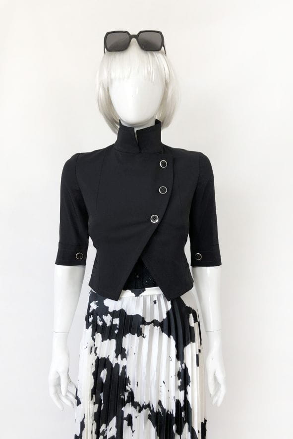 Oryginalna krótka katana Mangano. Minimalistyczny lekki model, zapinana na logowane guziki (zapasowy przy metce wewnętrznej). Rękawy 3/4. Do noszenia także jako żakiet.