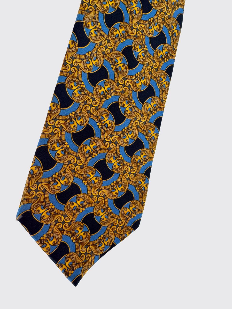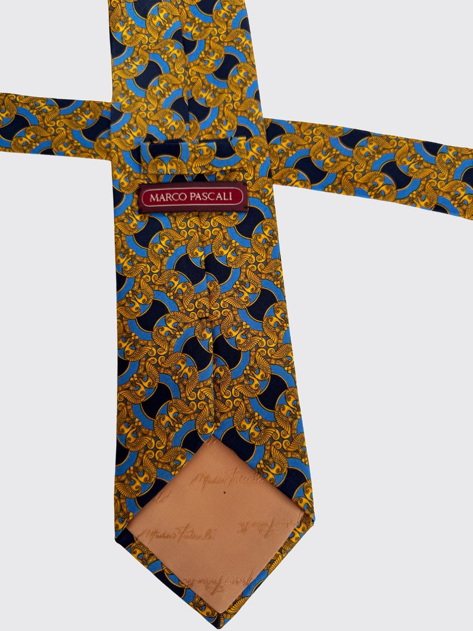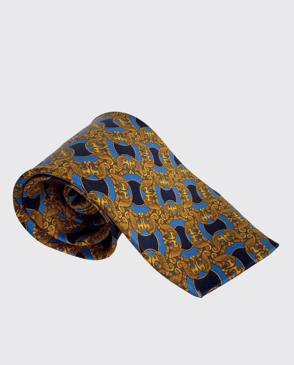 Ręcznie robiony, włoski krawat vintage Marco Pascali. Wykonany z jedwabiu w barokowe wzory