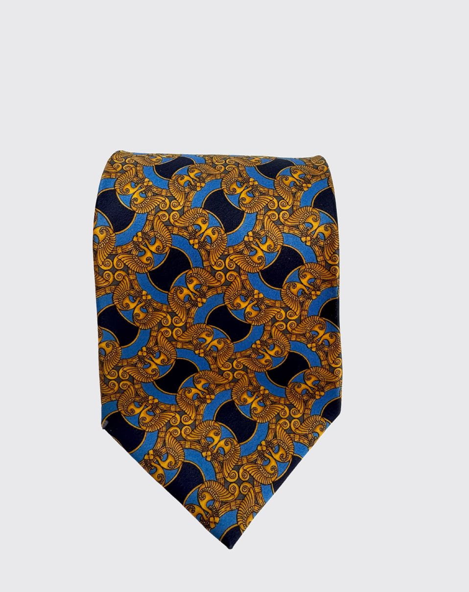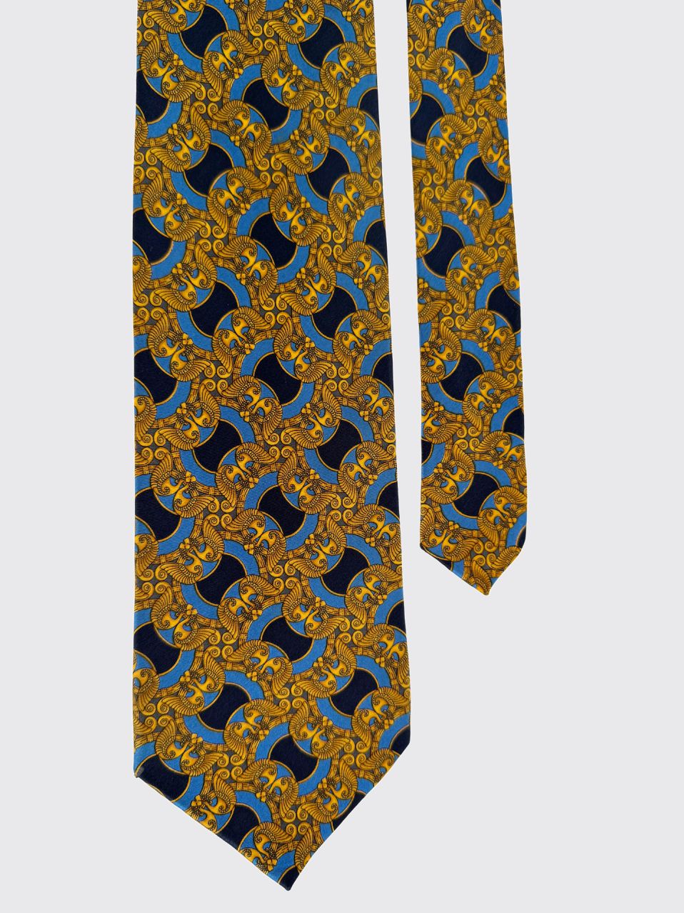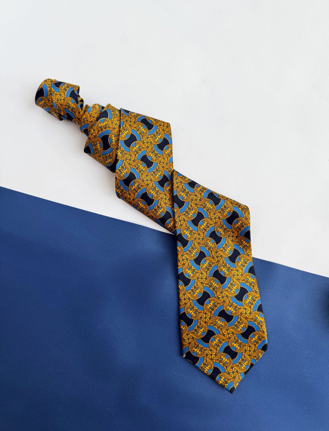 Ręcznie robiony, włoski krawat vintage Marco Pascali. Wykonany z jedwabiu w barokowe wzory