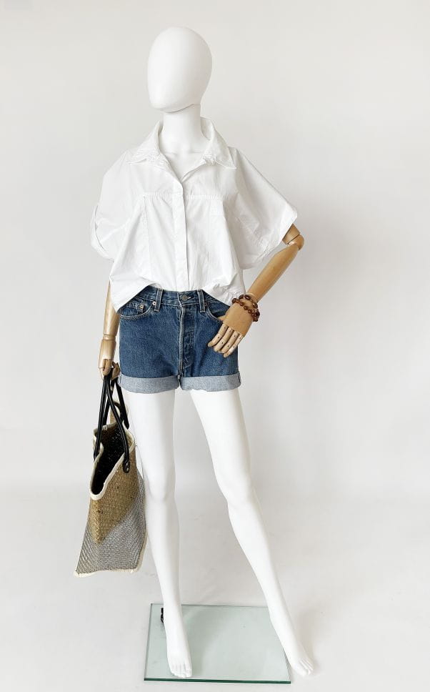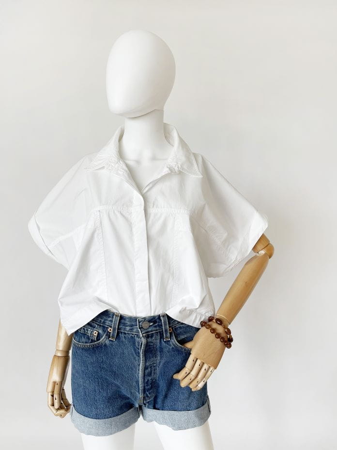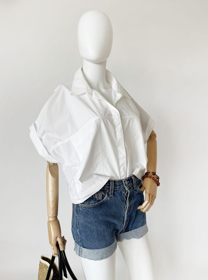 Bawełniana lekka koszula marki Zara o krótkim oversizowym kroju. U góry dwie kieszenie.