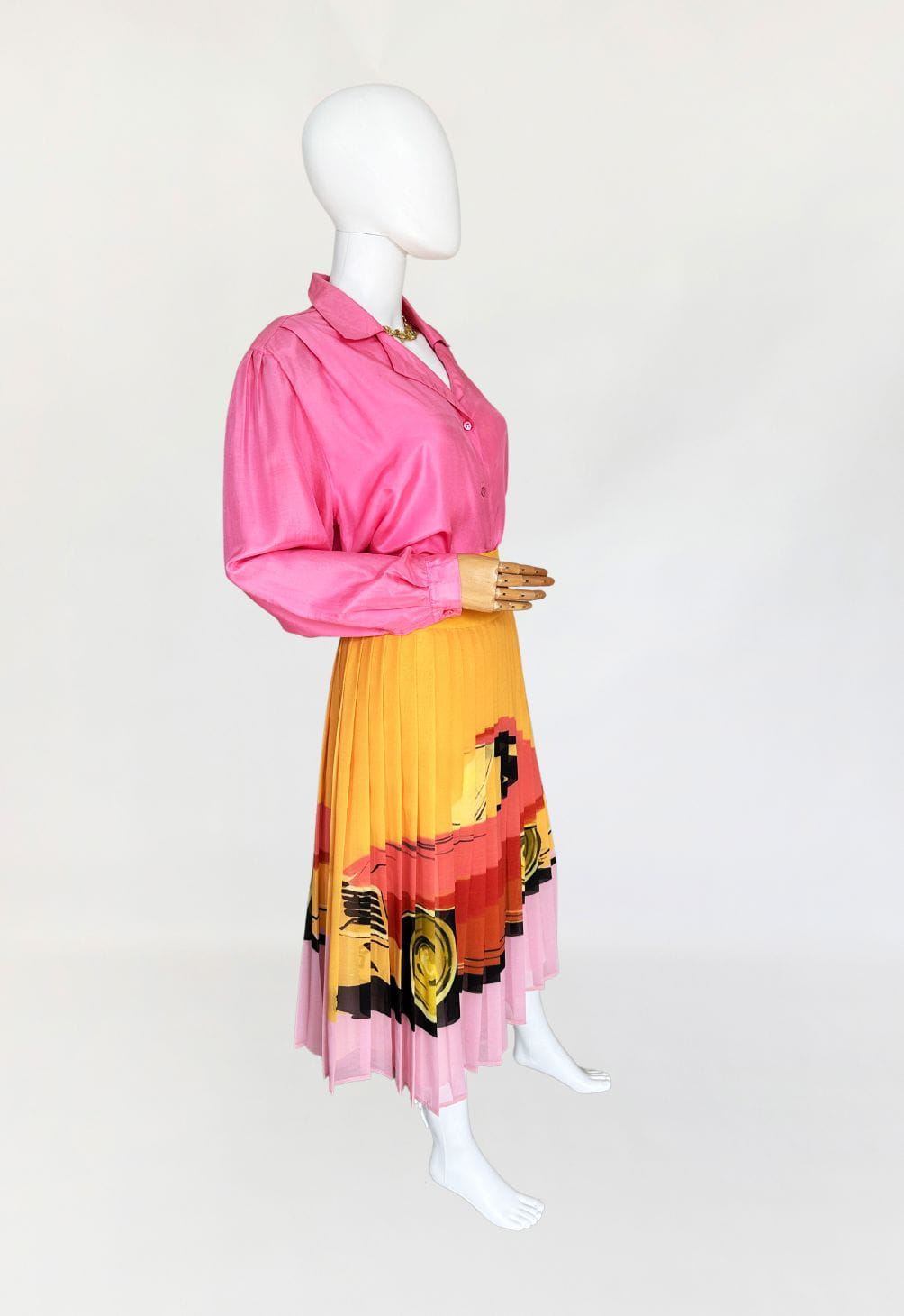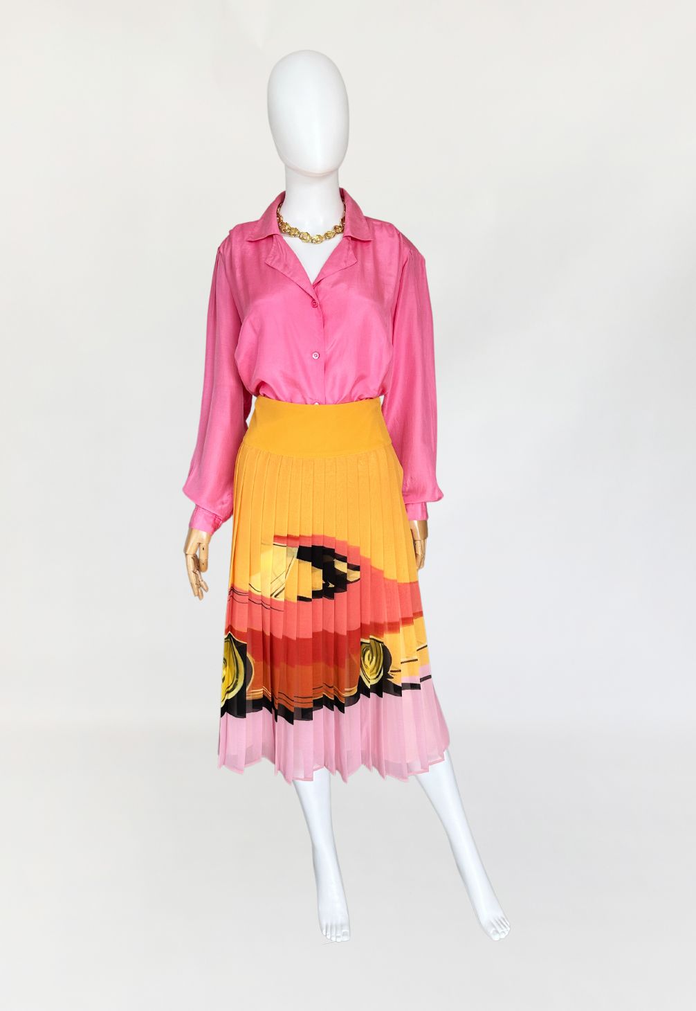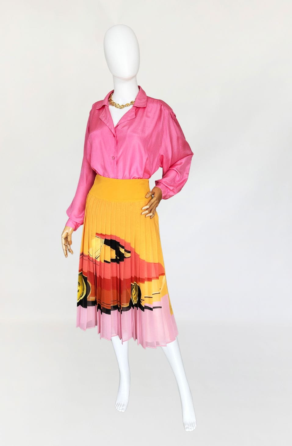 Nowa z kompletem metek. Plisowana spódnica marki Penny Black z limitowanej edycji 2020 "Sunset Road" powstałej we współpracy z amerykańskim ilustratorem i projektantem Spirosem Halarisem. Casual'owy model w soczystym zestawieniu colorblock z dużym printem oldschoolowego auta.