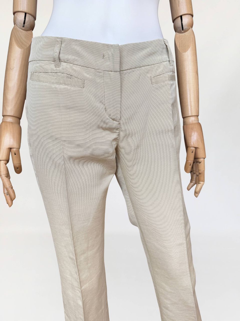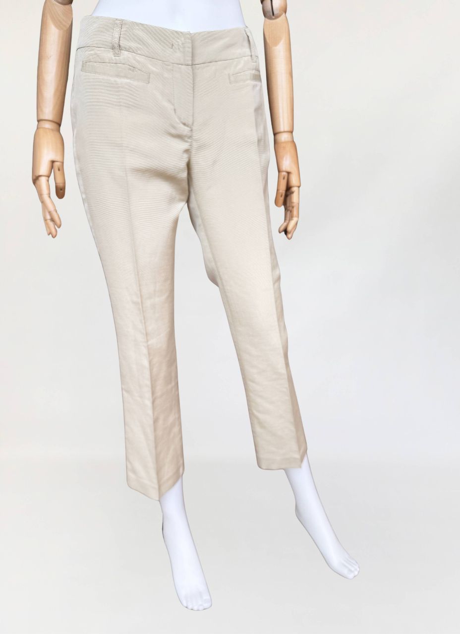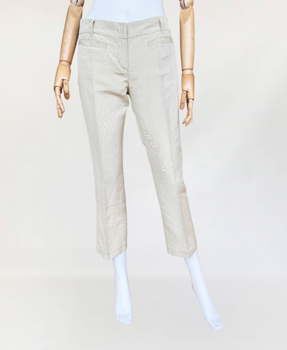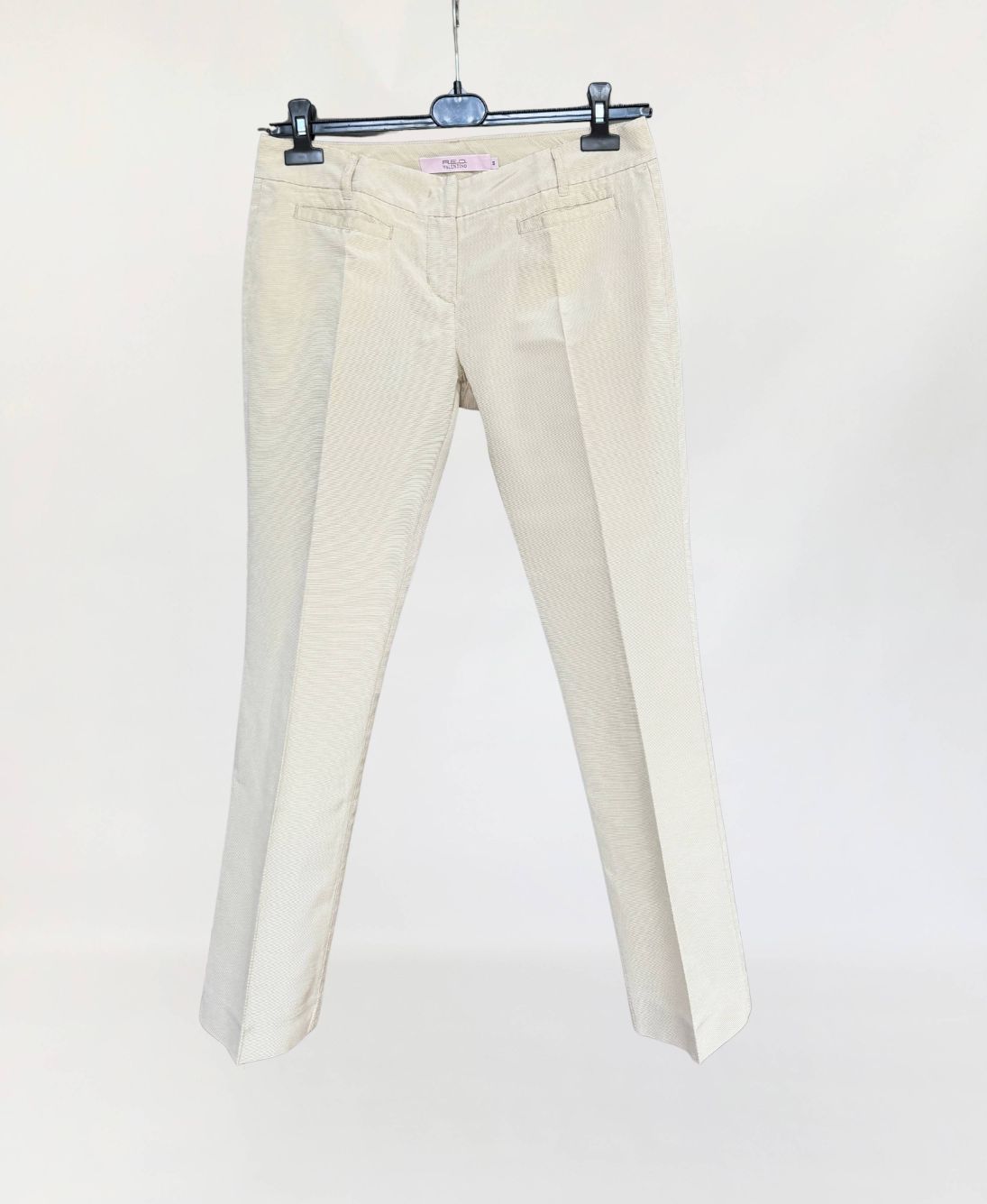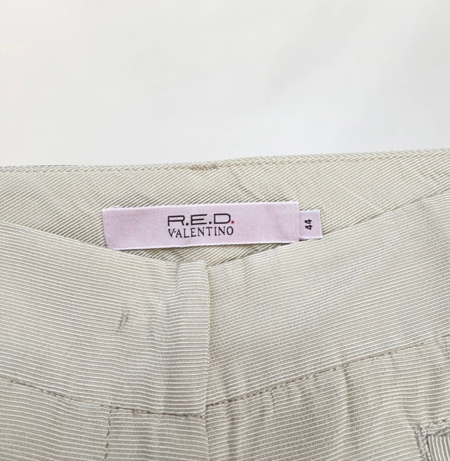 Oryginalne spodnie Red Valentino wykonane z rypsowej tkaniny w kolorze perłowego beżu. Klasyczny fason z nogawkami w kant, o długości 7/8. Od frontu małe kieszenie.