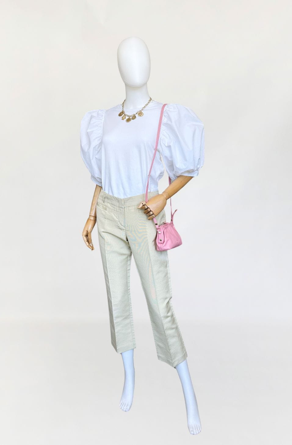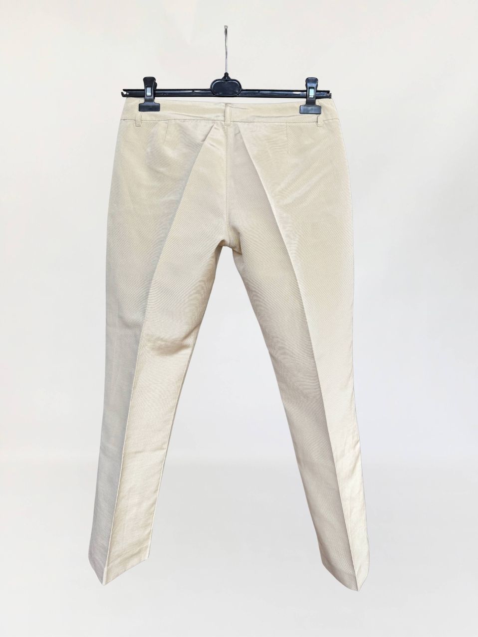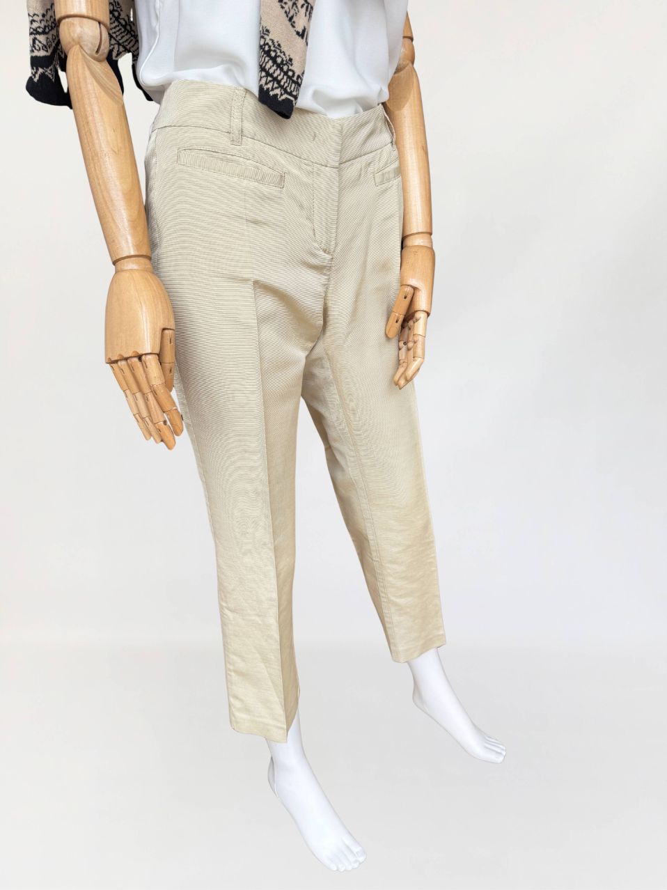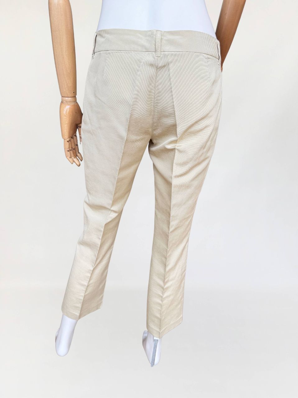 Oryginalne spodnie Red Valentino wykonane z rypsowej tkaniny w kolorze perłowego beżu. Klasyczny fason z nogawkami w kant, o długości 7/8. Od frontu małe kieszenie.