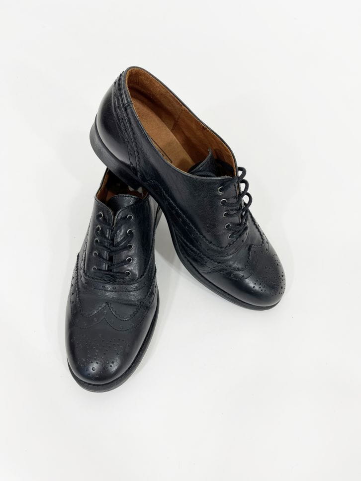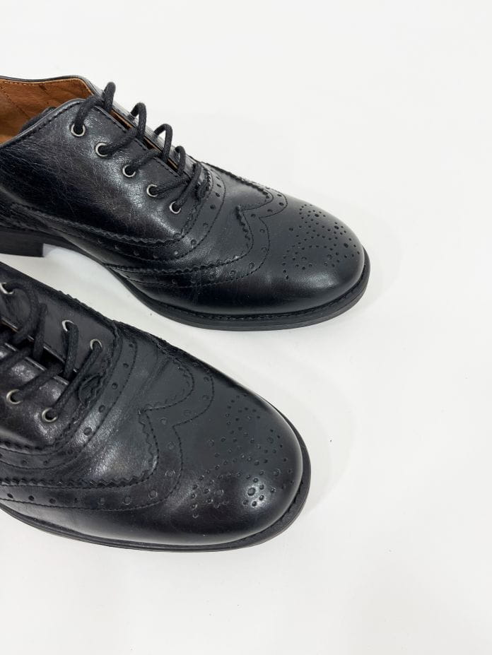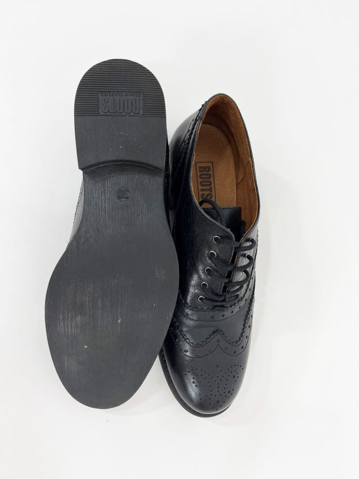 Stylowe czarne półbuty typu oksfordy, renomowana marka Roots. Wykonane z wysokiej jakości skóry naturalnej. Wewnątrz także ze skóry, mięciutkie. Sznurowany model. Jak nowe.