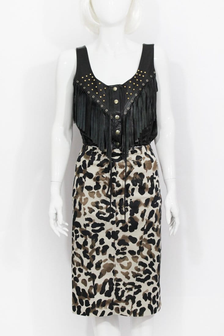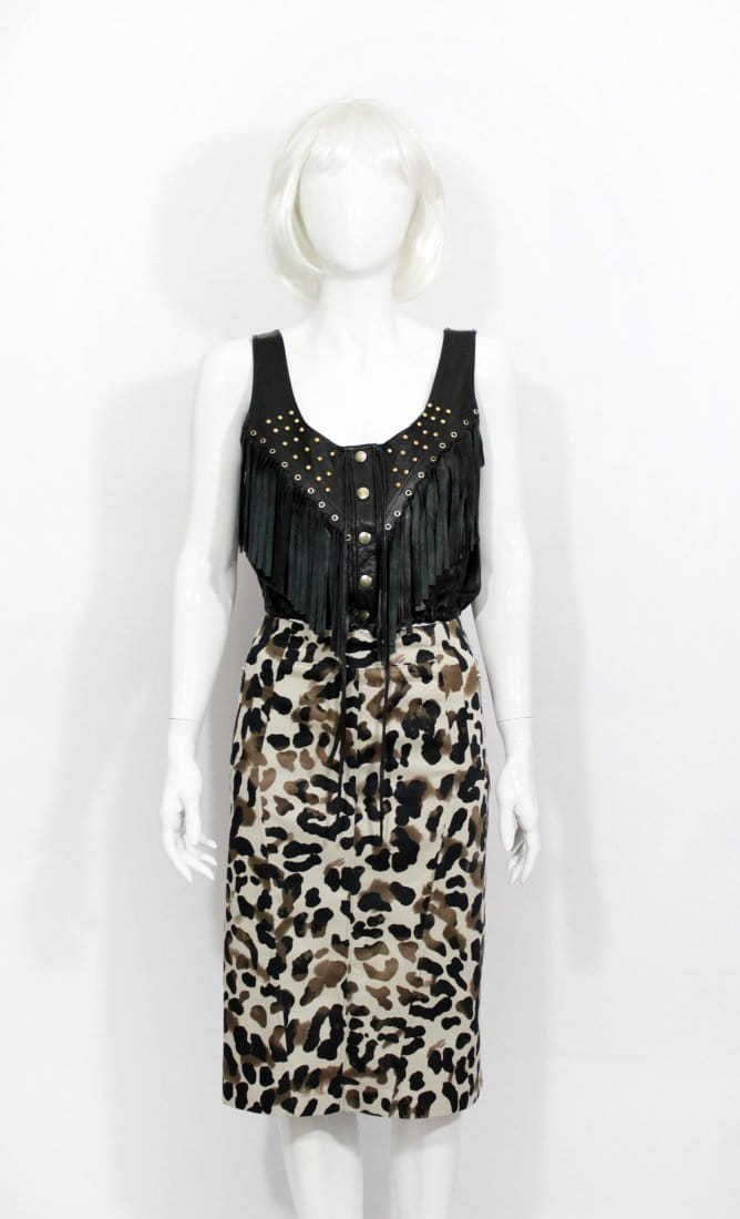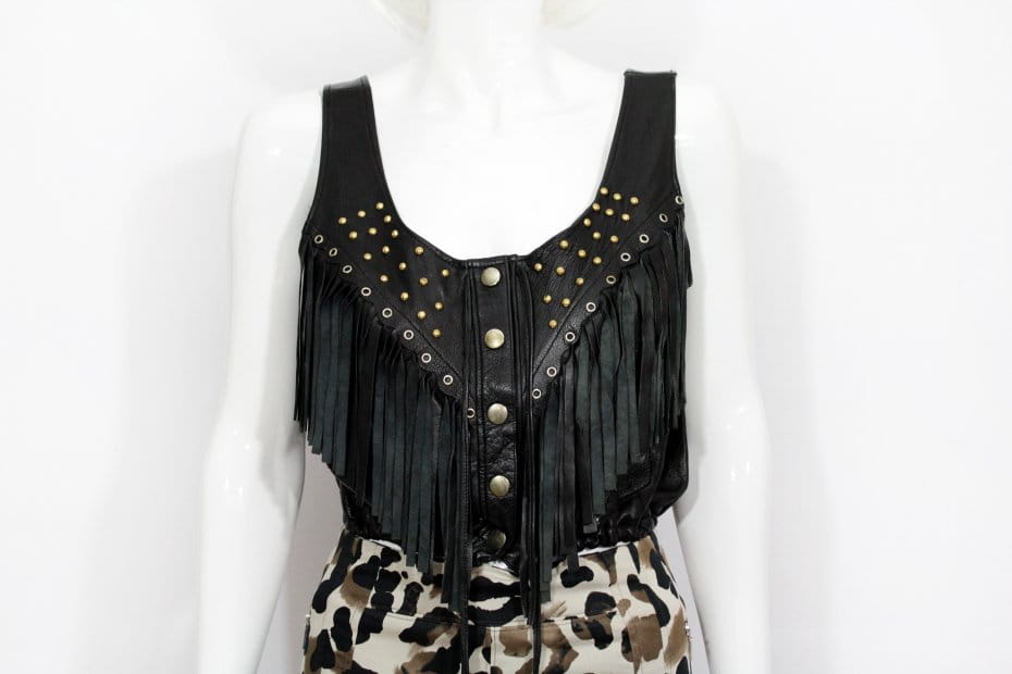 Skórzana bluzka z frędzlami vintage