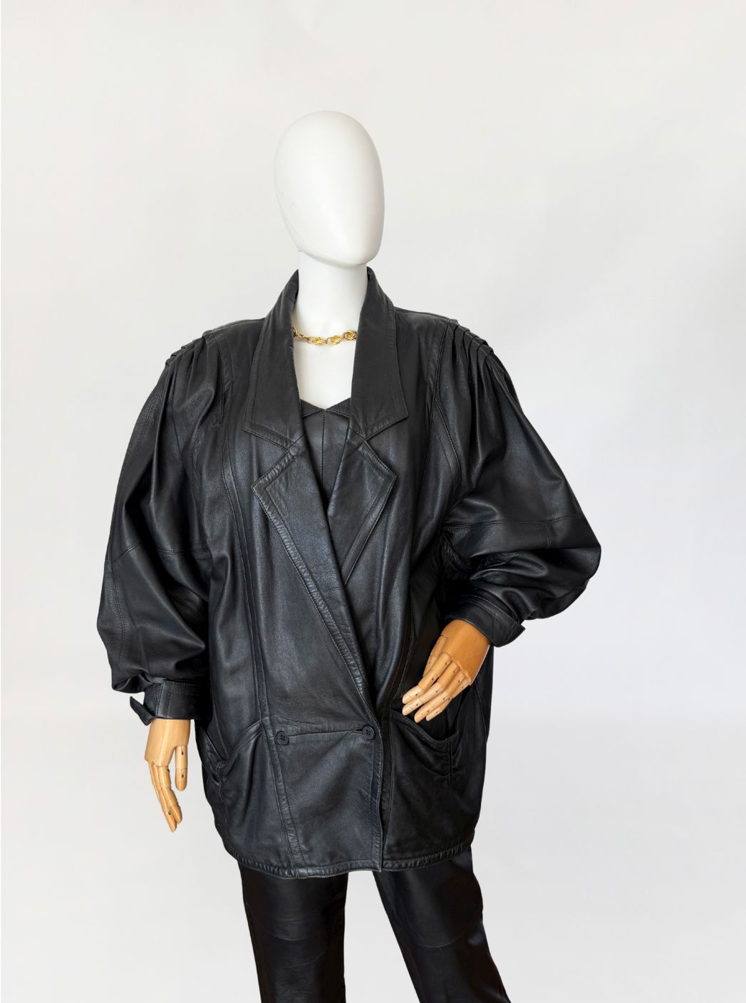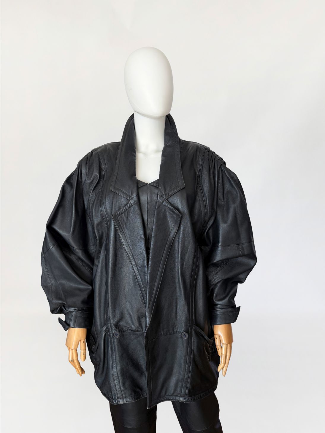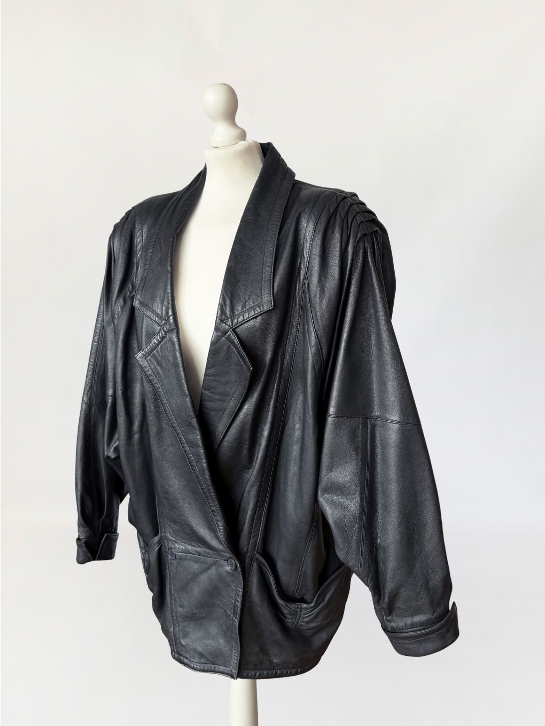 Skórzana kurtka vintage 1980s power shoulders