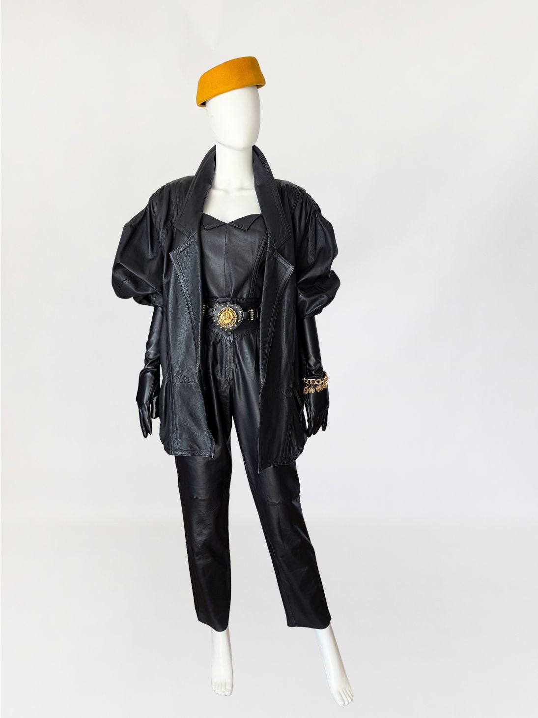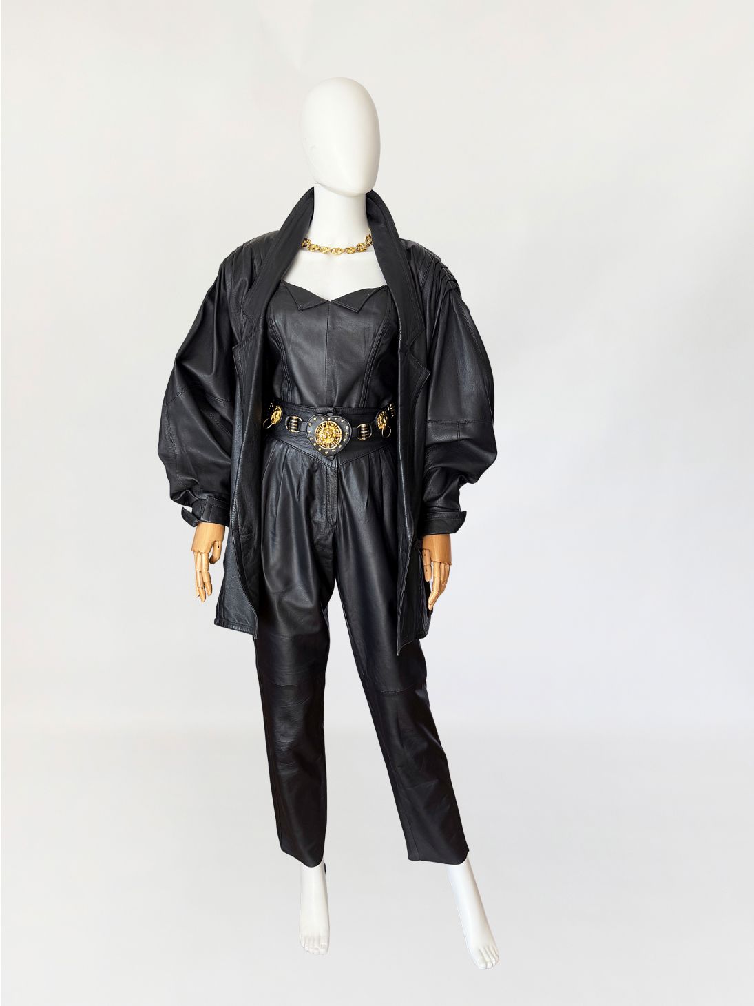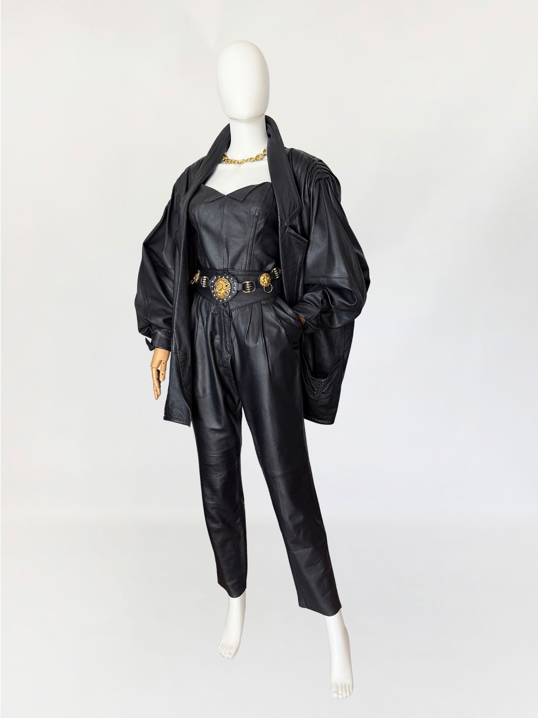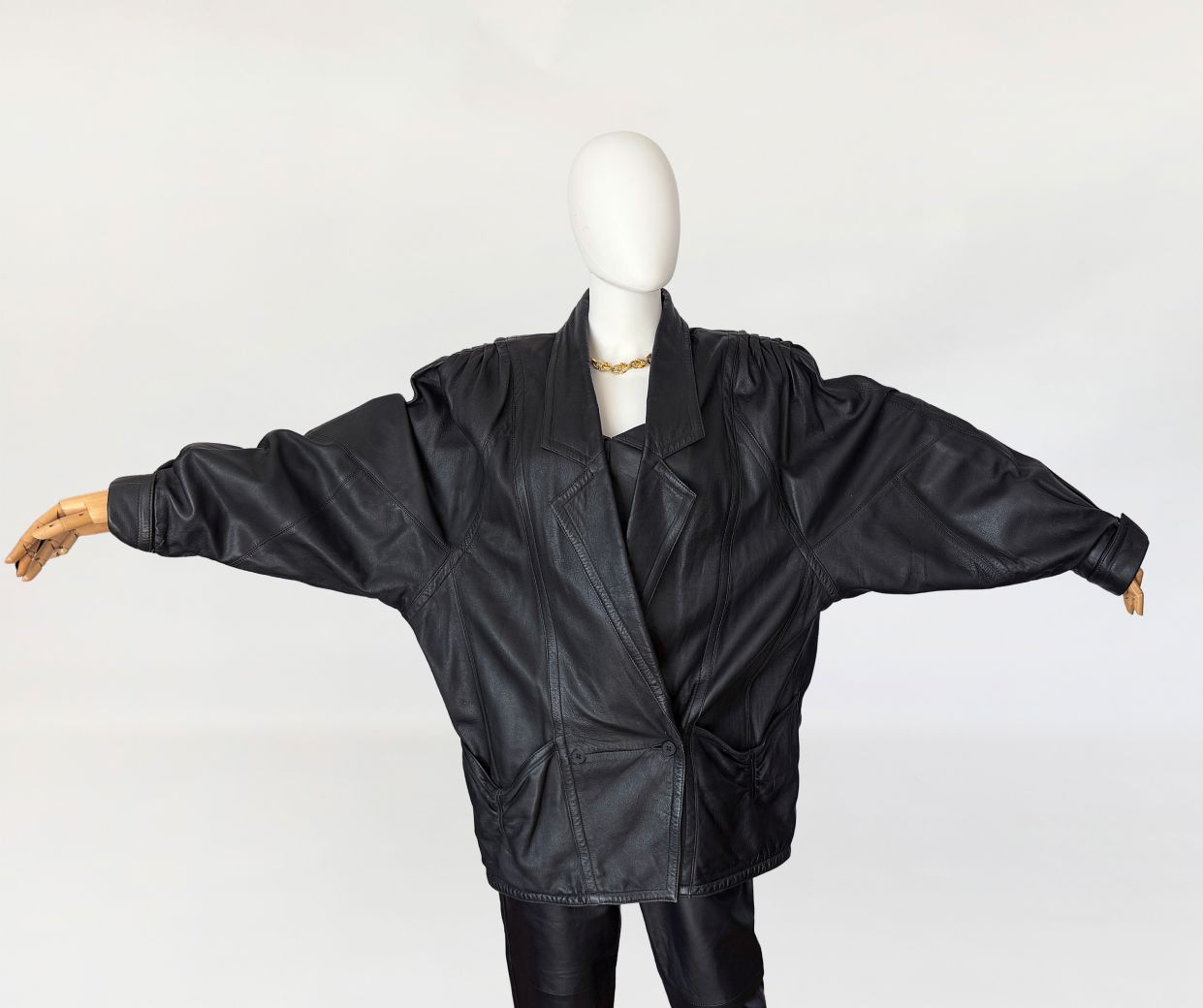 Skórzana kurtka vintage 1980s power shoulders