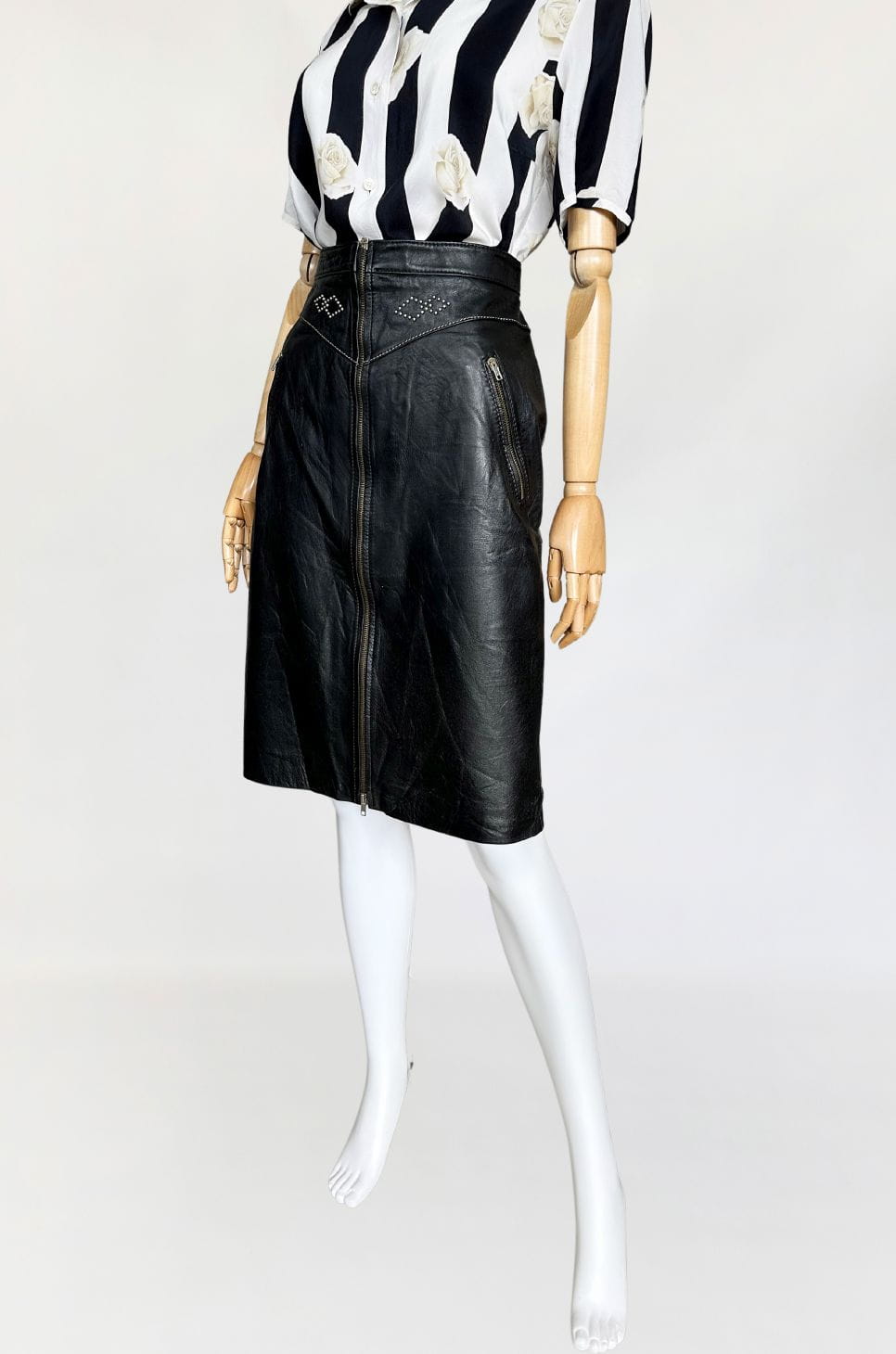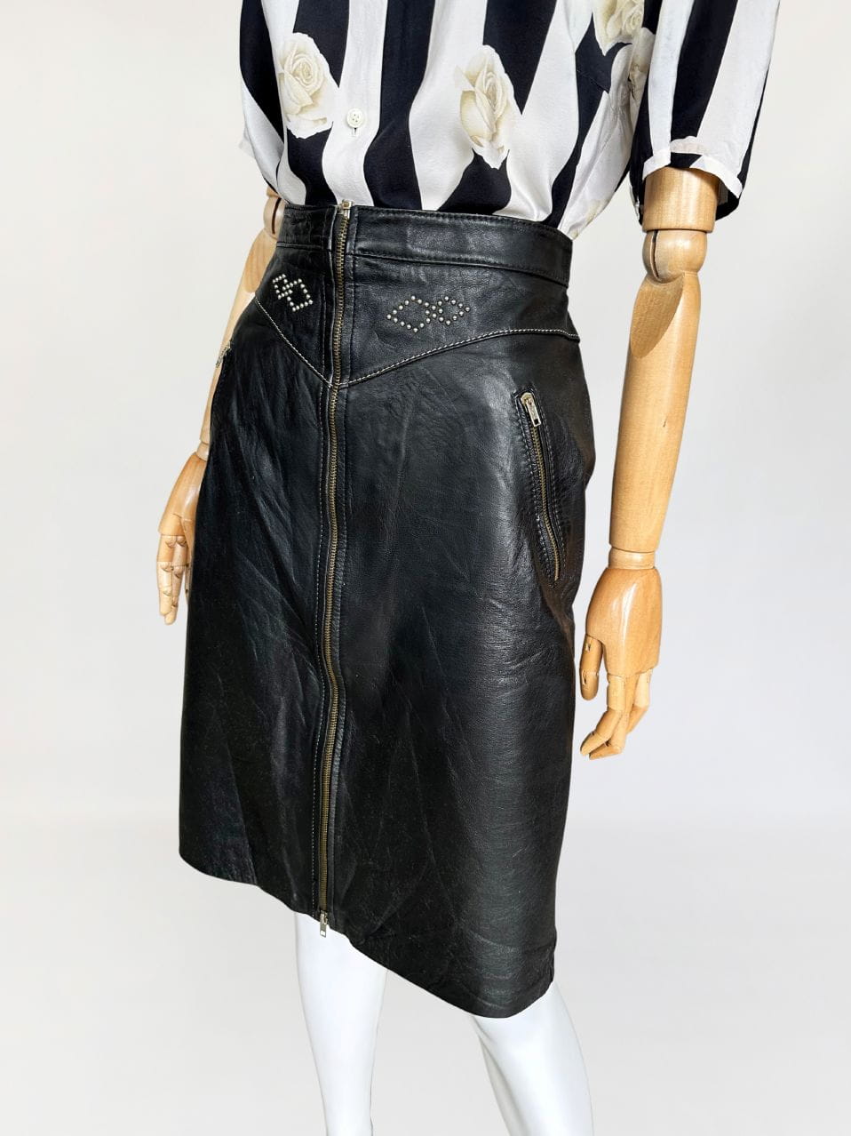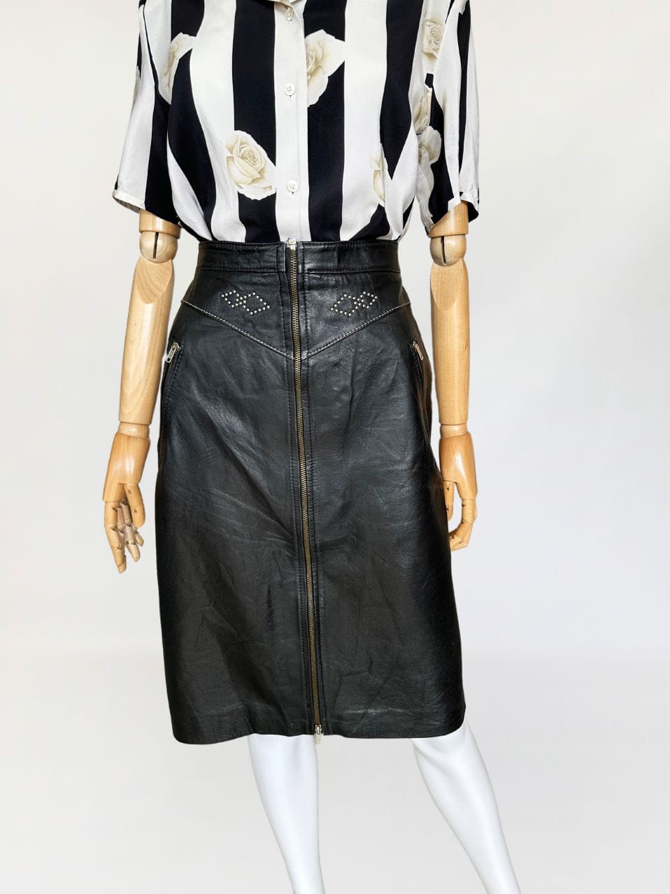 Skórzana włoska spódnica z nitami