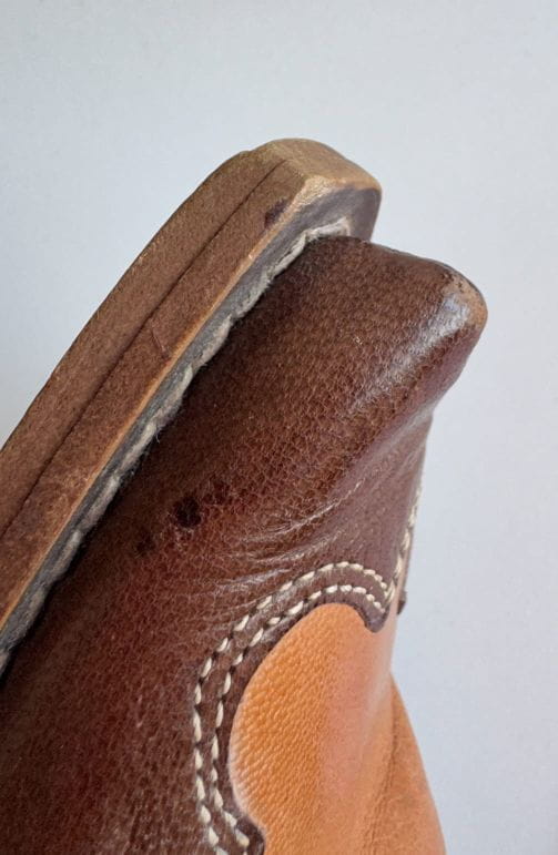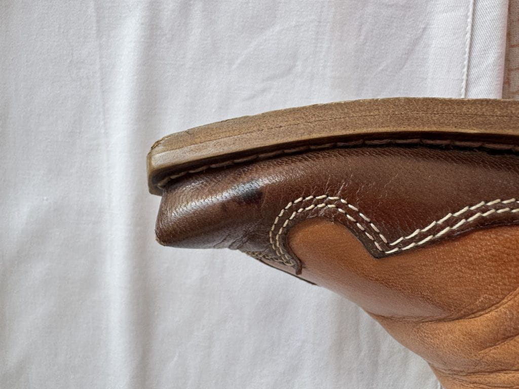 stan: vintage w stanie bardzo dobrym, dwie ciemniejsze plamki w okolicach czubów od strony podeszwy, jedna większa, druga mniejsza, kilka drobnych mankamentów uwidocznionych na zdjęciach, które są naturalnymi śladami użytkowania (ostatnie zdjęcia)