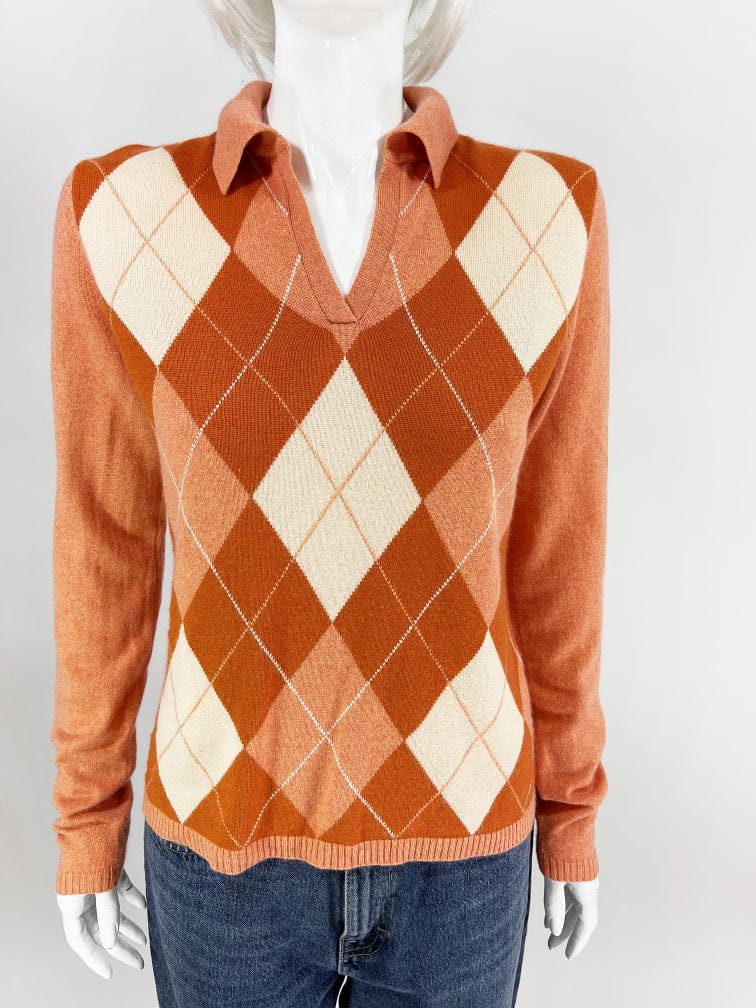 Świetny sweter renomowanej marki Giada. Deseń w nieśmiertelne romby. Doskonały gatunkowo, wykonany z jedwabiu i kaszmiru.