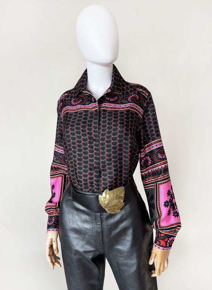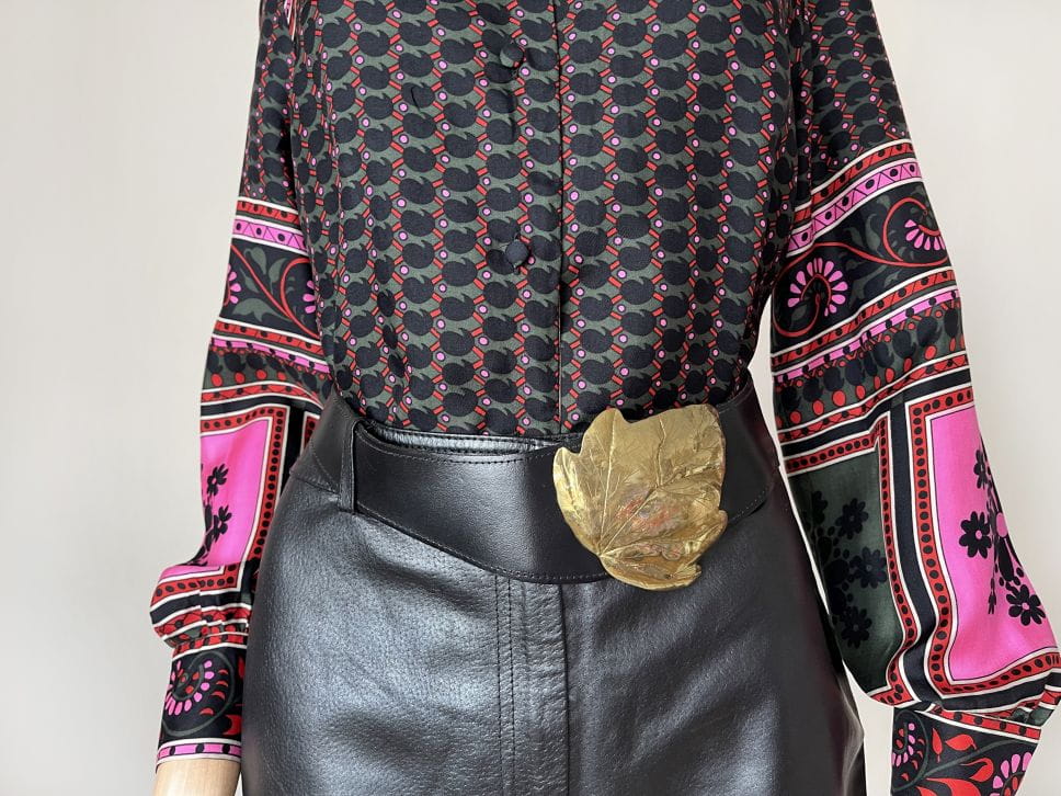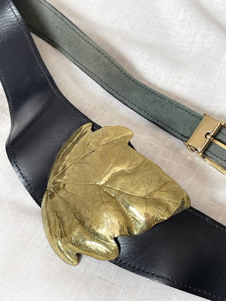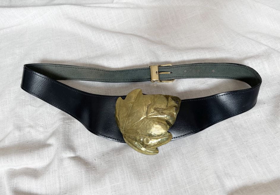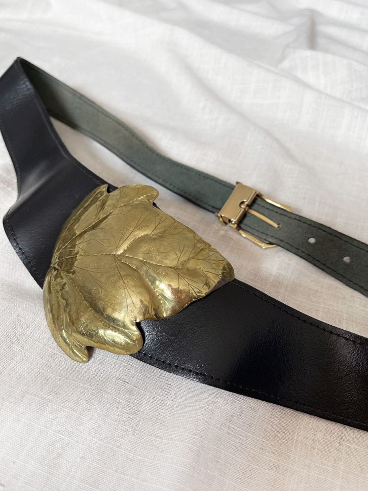 Pasek vintage renomowanej marki Taner. Wykonany z naturalnej skóry w czarnym kolorze. Od frontu duża dekoracyjna aplikacja - liść. Kilkustopniowa regulacja obwodu.