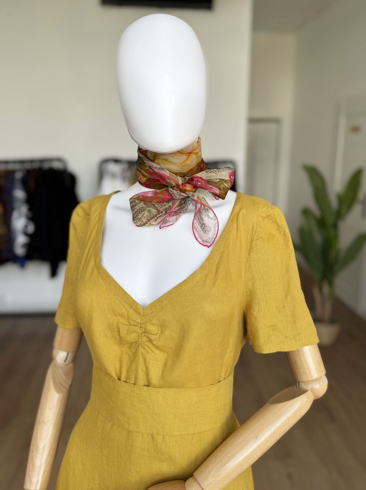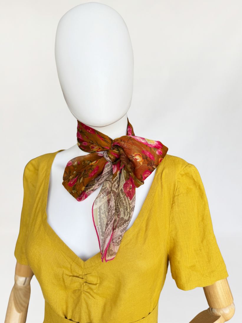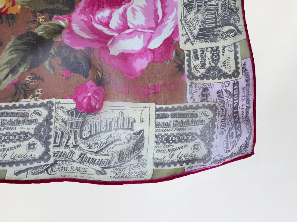 Apaszka vintage domu mody Ungaro wykonana z półtransparentnego jedwabnego szyfonu w kwiatowe wzory. Ręcznie rolowane, podwijane brzegi.