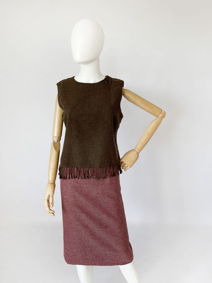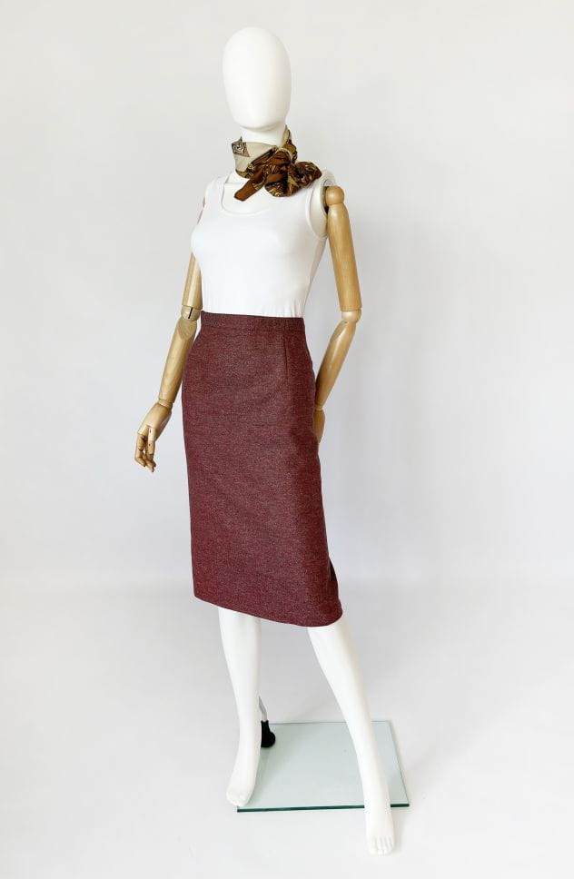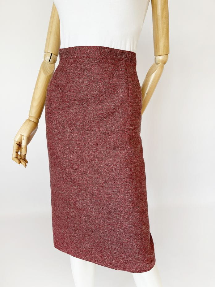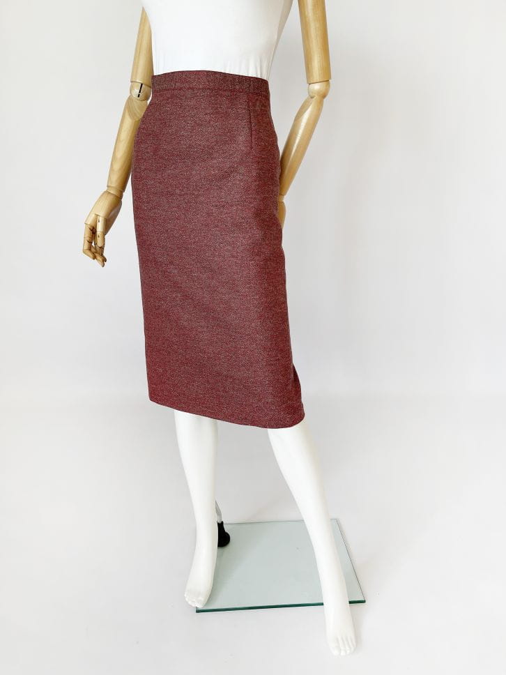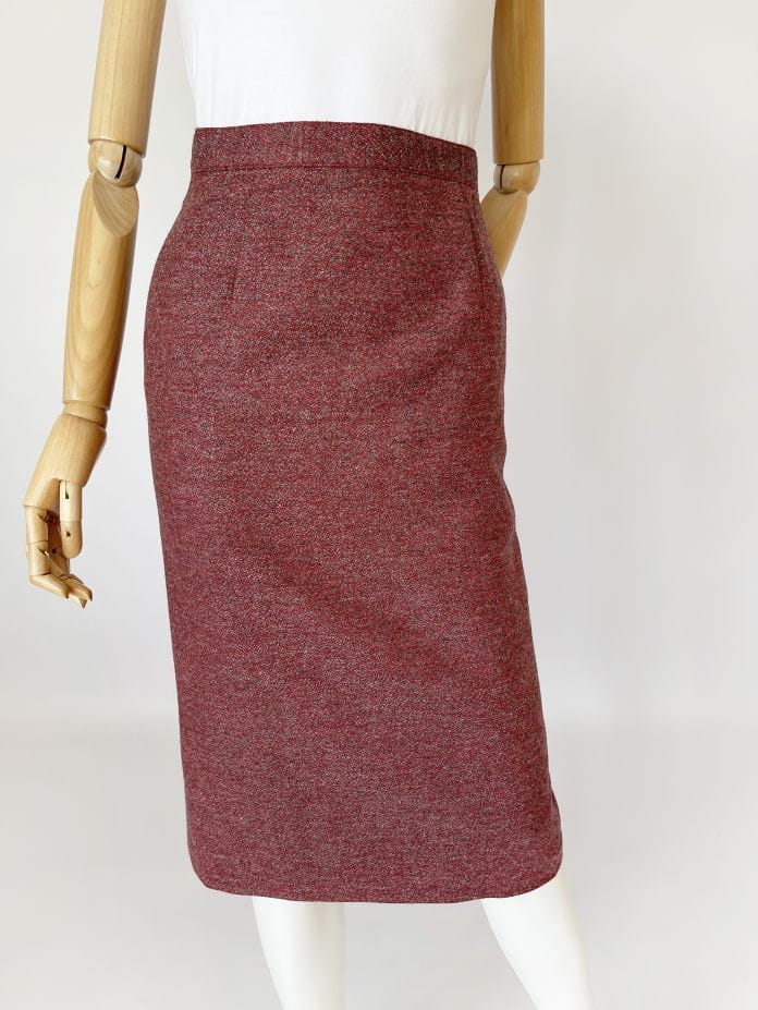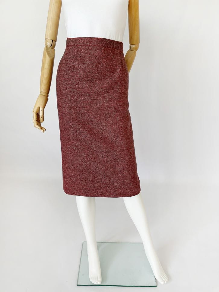 Ołówkowa wełniana spódnica vintage o melanżowym deseniu. Wykonana z wysokiej jakości żywej wełny. Model z podszewką.