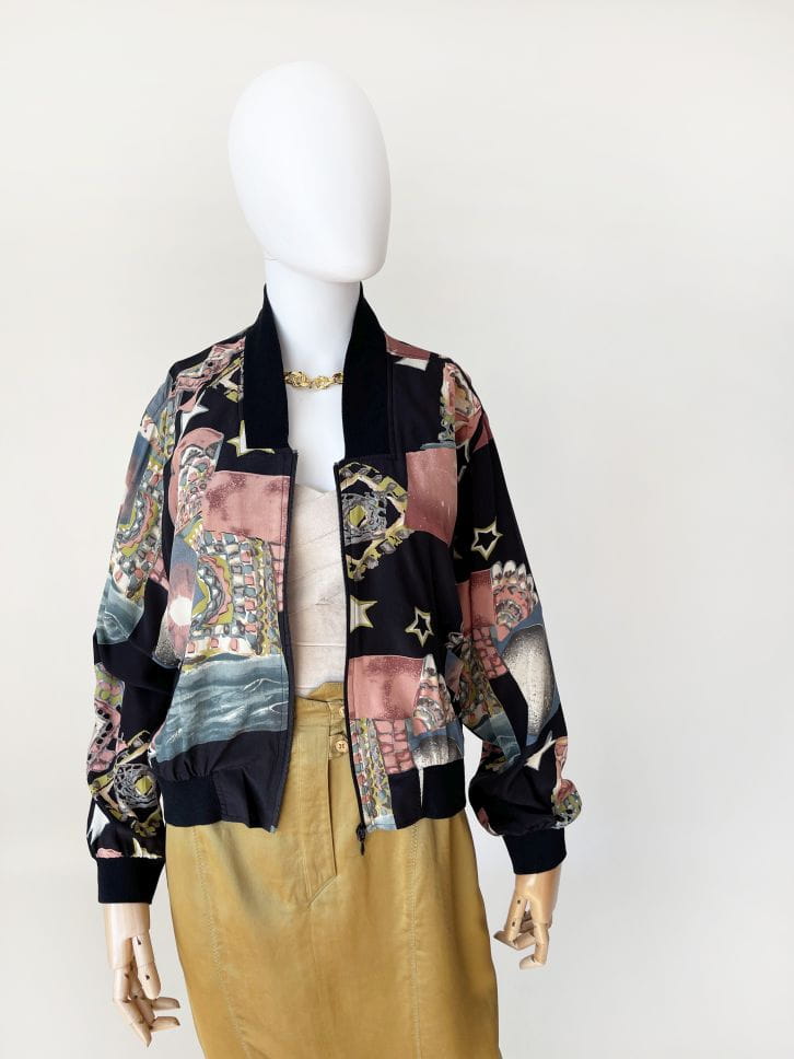 Wzorzysta jedwabna bomberka vintage