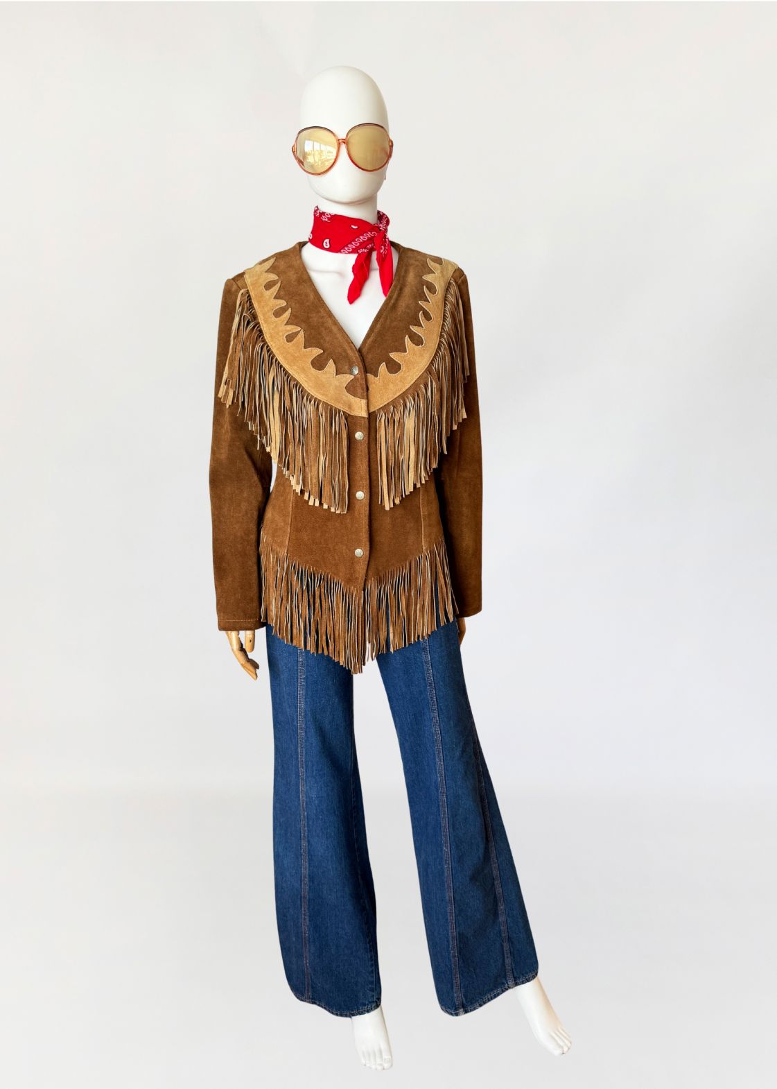 Zamszowa westernowa kurtka vintage z frędzlami